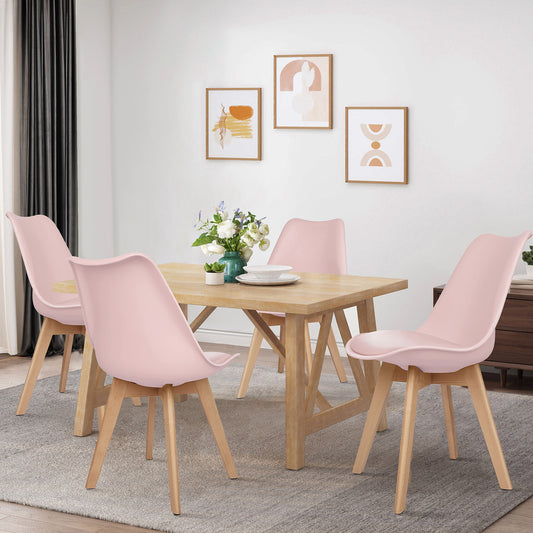 ALFORDSON 4x Dining Chairs Padding Retro PU Leather Kitchen Lounge Wooden Pink