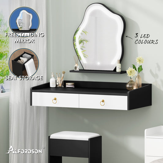 ALFORDSON Dressing Table Stool Set Floating Makeup Mirror LED Vanity Desk Black