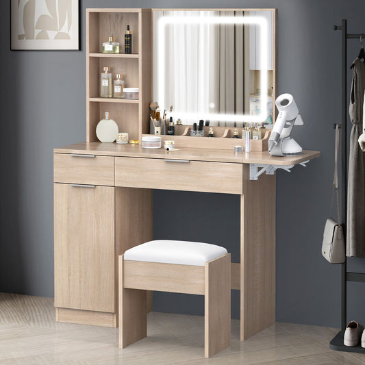 ALFORDSON Dressing Table Stool Set Makeup Mirror Vanity Desk LED Bulbs Oak