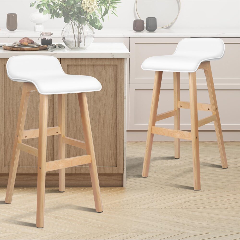 ALFORDSON 4x Wooden Bar Stools Kitchen Dining Chair Leather Samuel WHITE