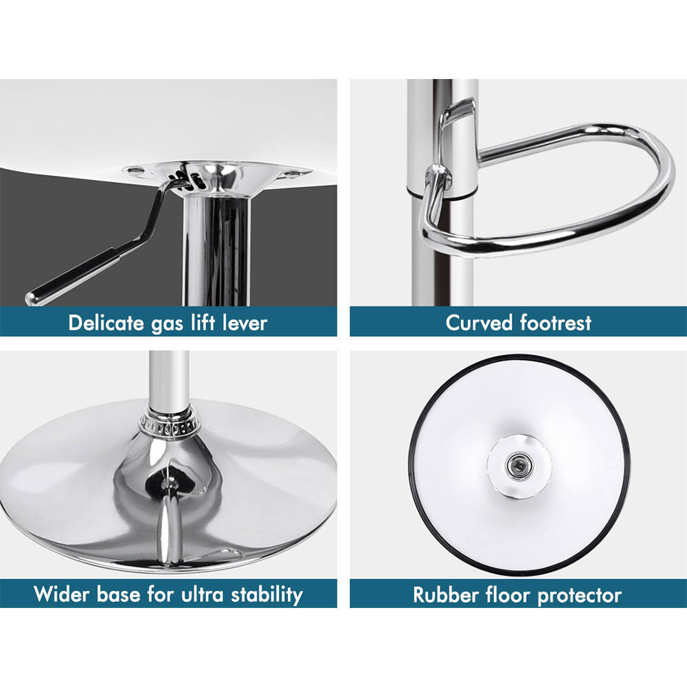 Upholstered in premium PU leather, the seat and backrest are richly padded with high-resilience foam. It presents a 360-degree swivel and adjustable seat height. The shiny chrome base and footrest complement the stool's modern design. A rubber floor protector ring reduces noise and protects your floor.