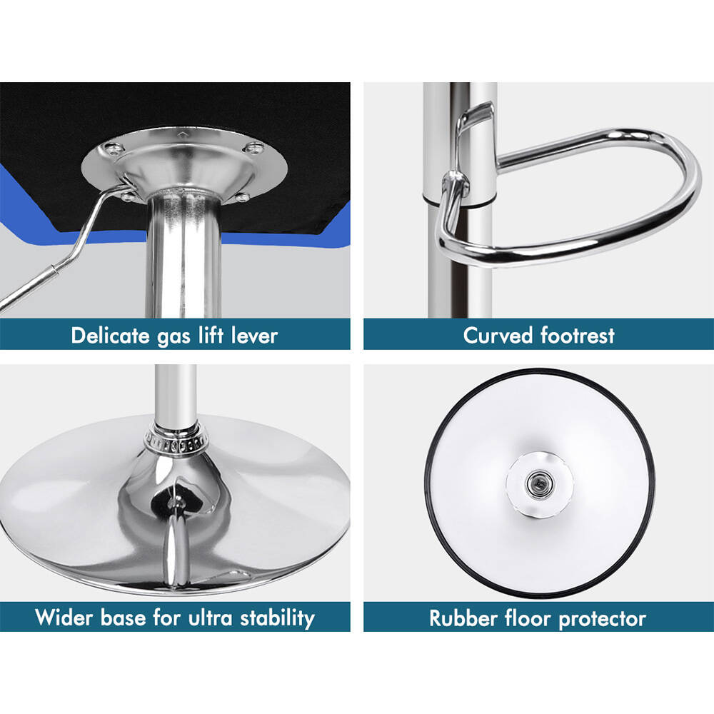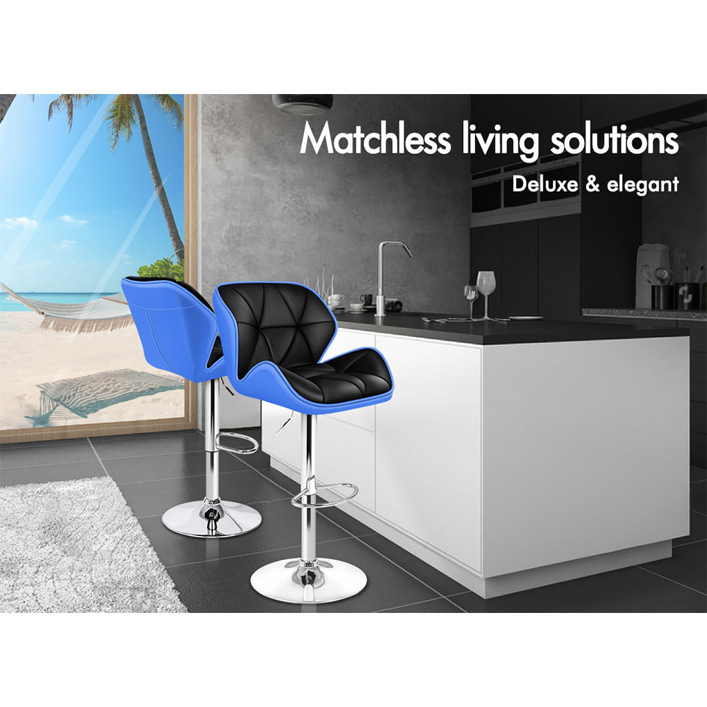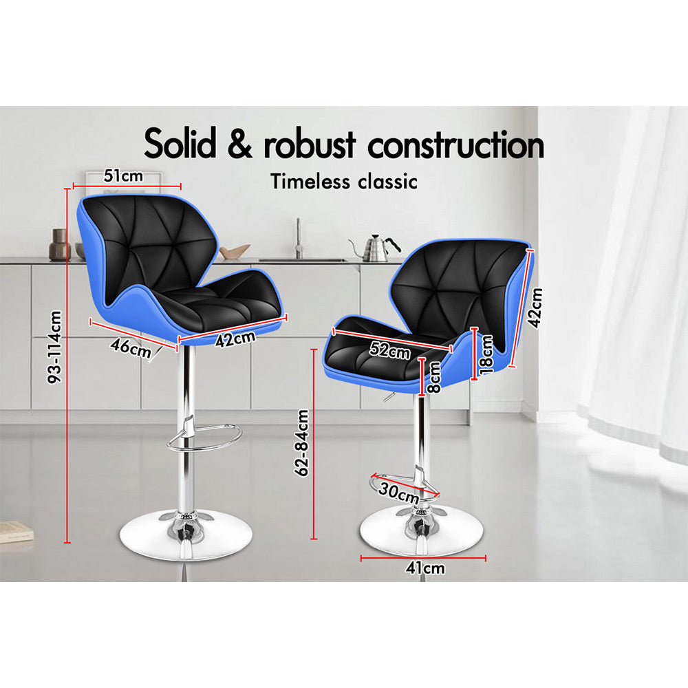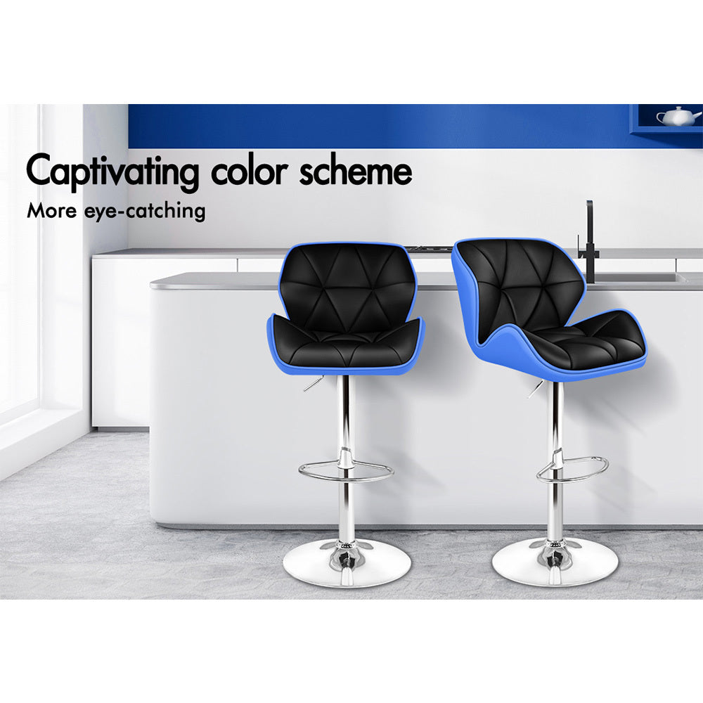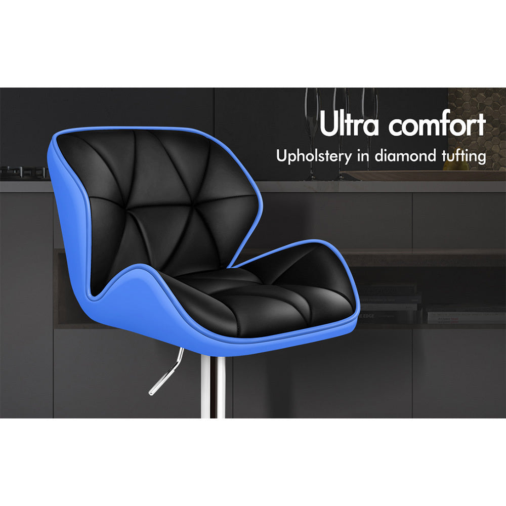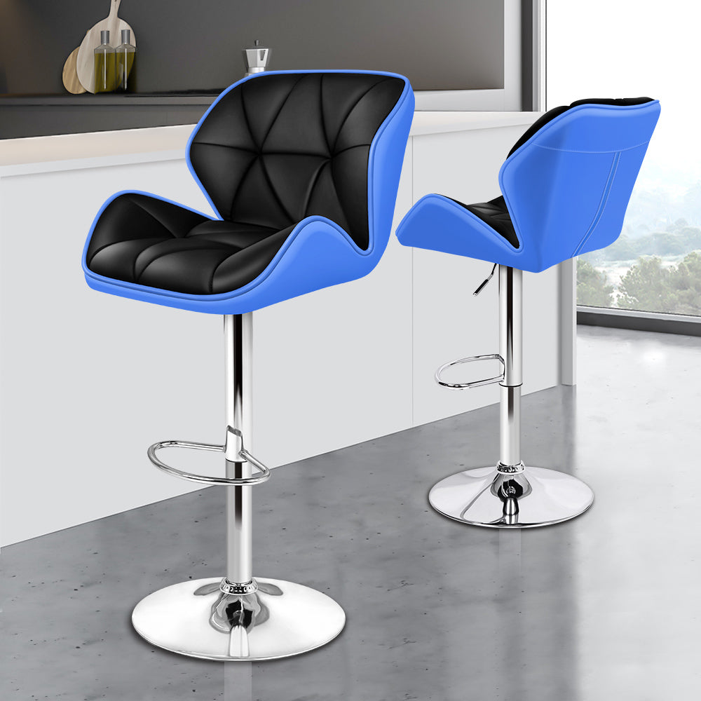 Alfordson 2x Bar Stools Willa Kitchen Gas Lift Swivel Chair Leather BLUE