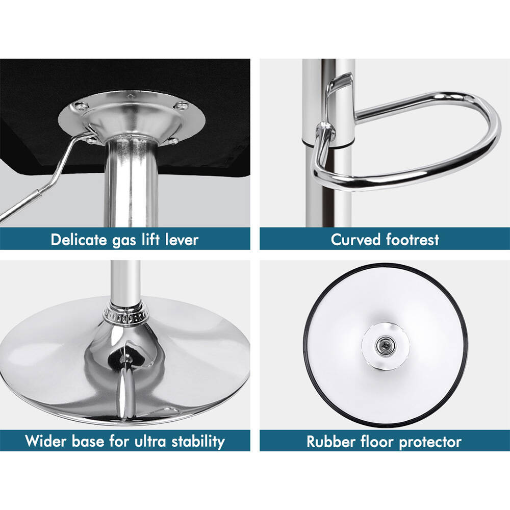 Upholstered in premium PU leather, the seat and backrest are richly padded with high-resilience foam. It presents a 360-degree swivel and adjustable seat height. The shiny chrome base and footrest complement the stool's modern design. A rubber floor protector ring reduces noise and protects your floor.