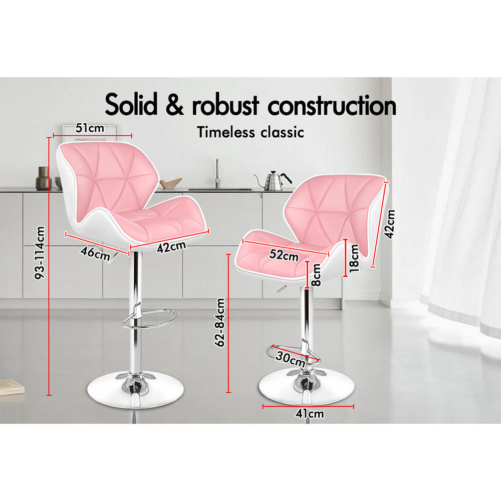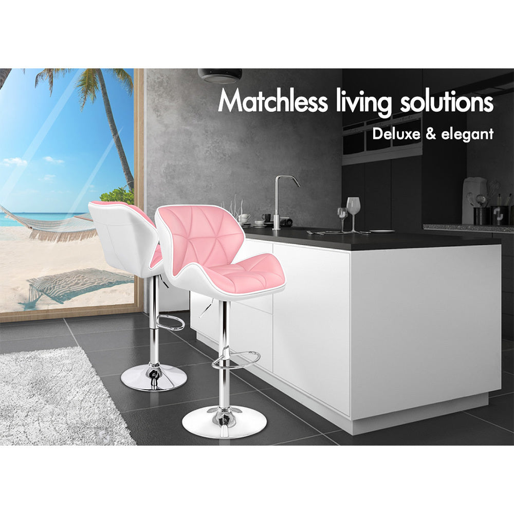 Alfordson 2x Bar Stools Willa Kitchen Gas Lift Swivel Chair Leather PINK
