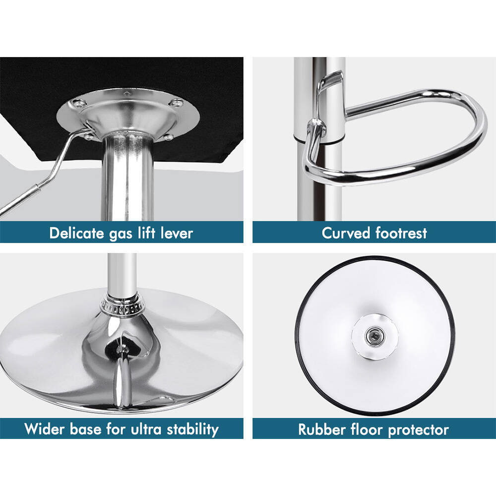 Upholstered in premium PU leather, the seat and backrest are richly padded with high-resilience foam. It presents a 360-degree swivel and adjustable seat height. The shiny chrome base and footrest complement the stool's modern design. A rubber floor protector ring reduces noise and protects your floor.