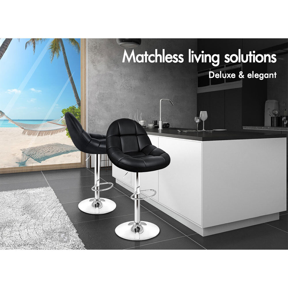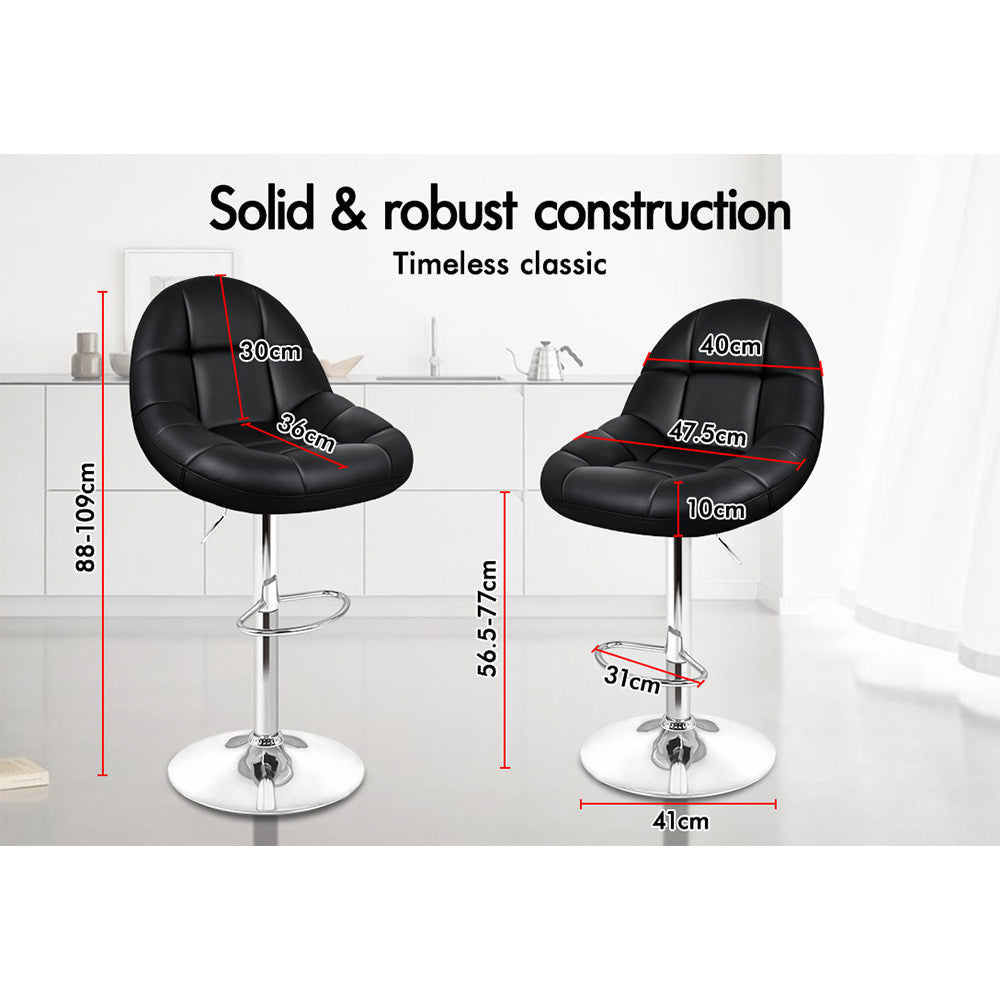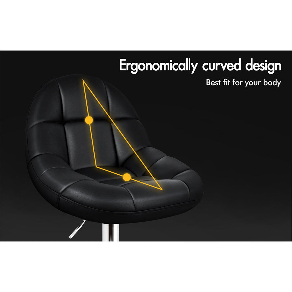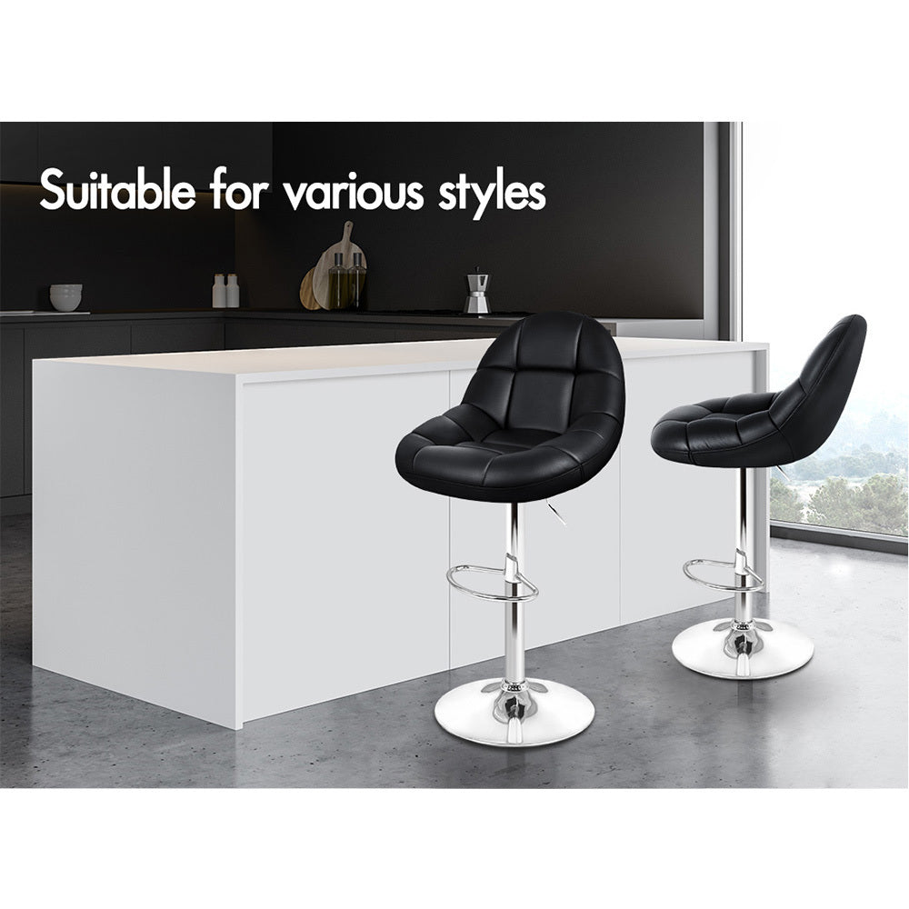 Alfordson 2x Bar Stools Pacey Kitchen Swivel Chair Leather Gas Lift BLACK