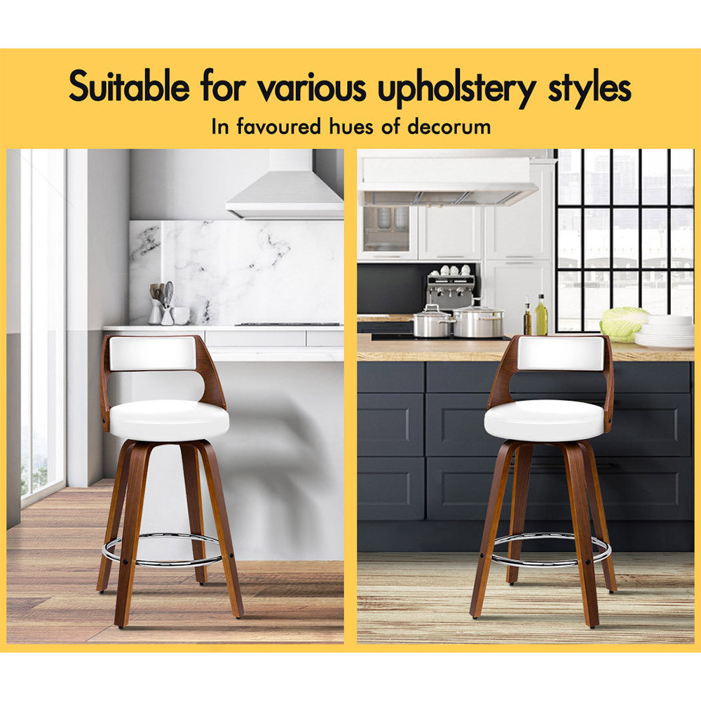 Upholstered in premium PU leather, the seat and backrest are richly padded with high-resilience foam and comfortable. Enhanced wooden base, made of solid plywood, ensures ultra stability with long-lasting durability. Your floor is also aptly protected with anti-slip plastic floor protectors attached to each leg of the bar stool.