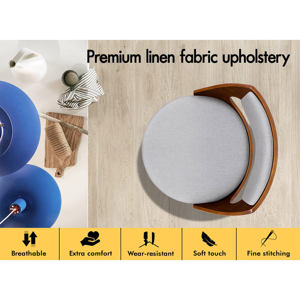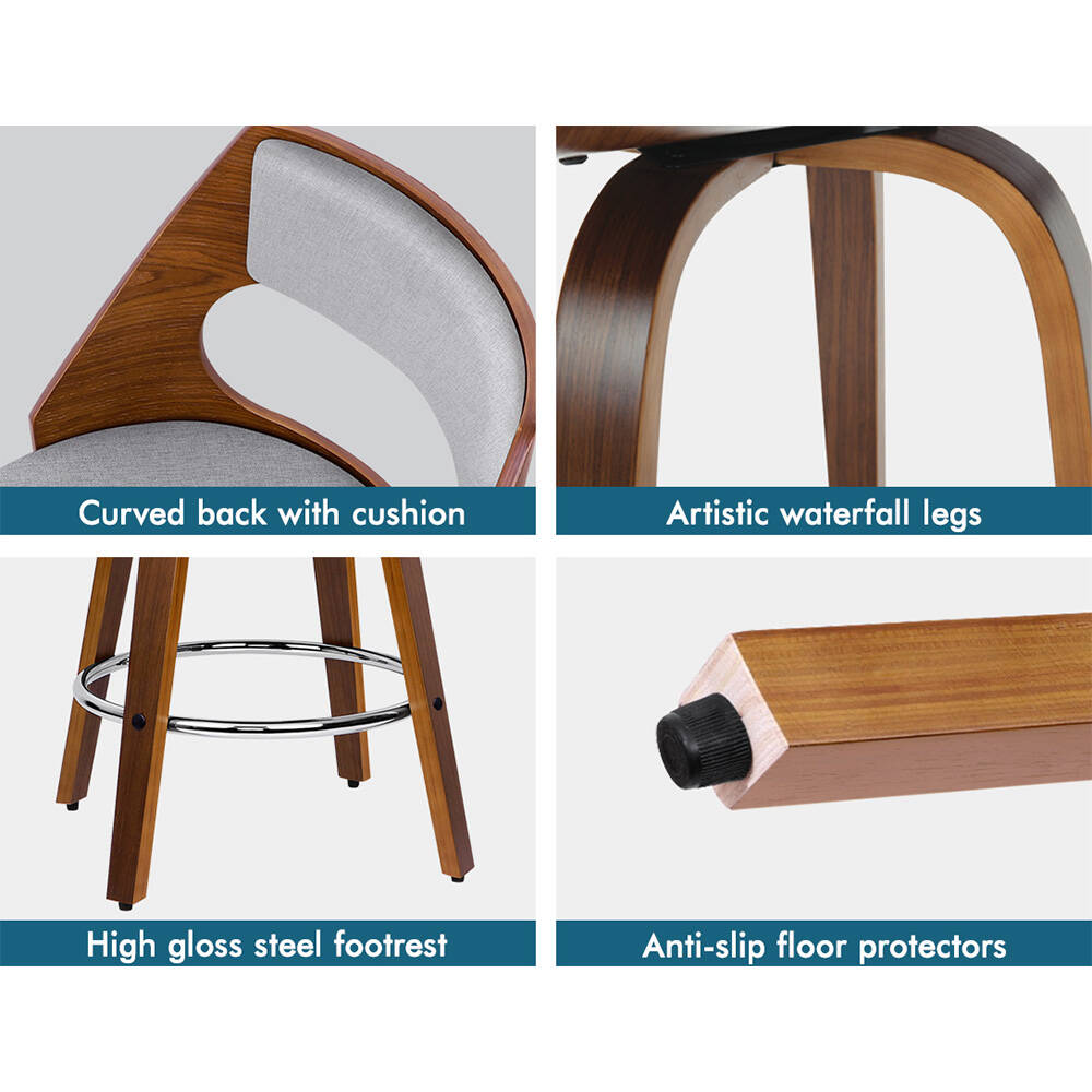 Upholstered in premium linen fabric, the seat and backrest are richly padded with high-resilience foam and comfortable. Enhanced wooden base, made of solid plywood, ensures ultra stability with long-lasting durability. Your floor is also aptly protected with anti-slip plastic floor protectors attached to each leg of the bar stool.