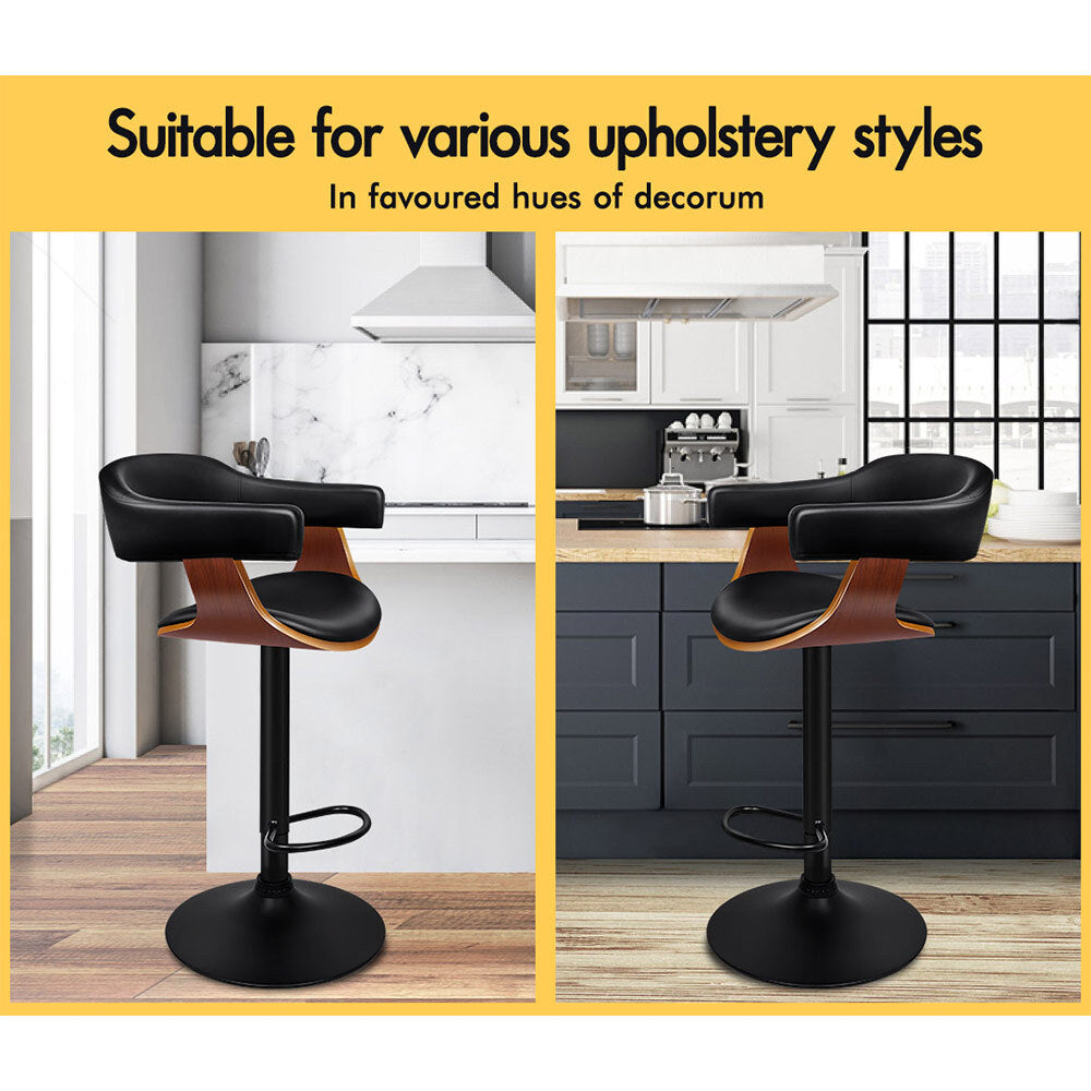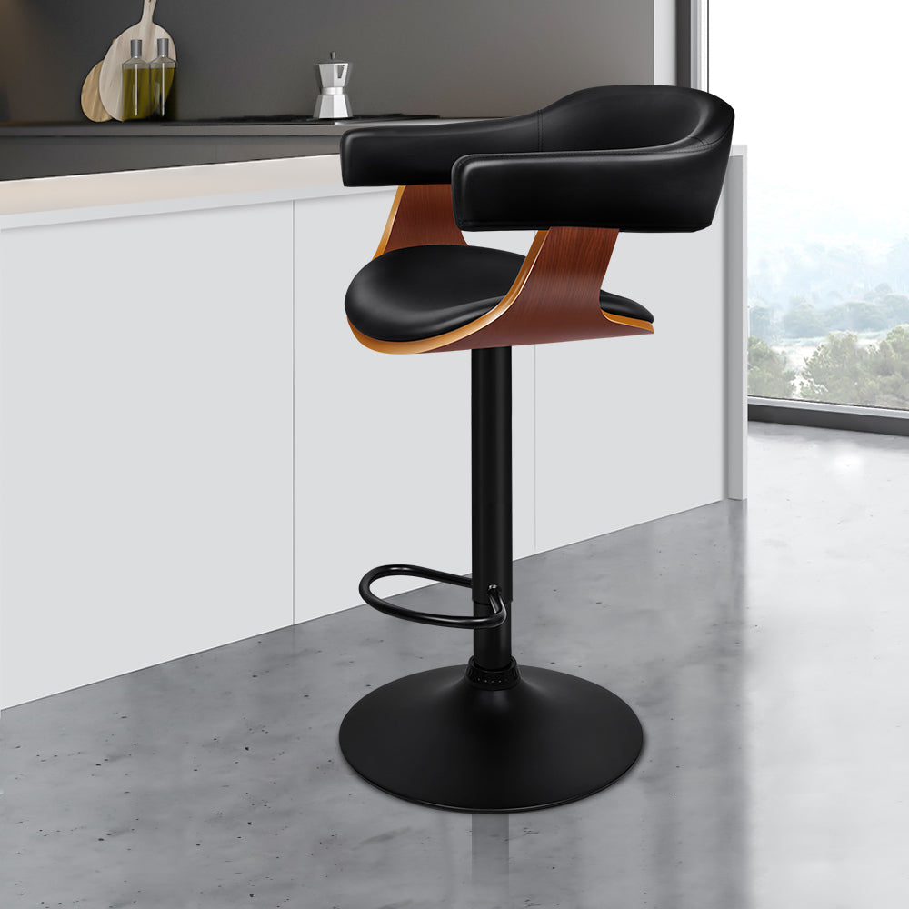 With an eclectic mix of wood, metal and leather, this bar stool is designed to match any furniture taste. Upholstered in premium PU leather, the seat and backrest are richly padded with high-resilience foam and comfortable. Thanks to its high-density foam, they provide adequate support in the right places for a delightful sitting experience. It presents a 360-degree swivel and adjustable seat height. Better still, the black powder coated chrome base and footrest complement the stool's modern design.