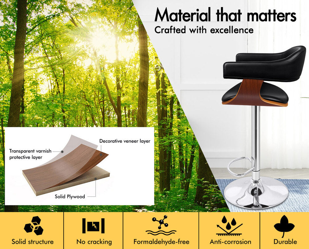 Upholstered in premium PU leather, the seat and backrest are richly padded with high-resilience foam and comfortable. Enhanced wooden base, made of solid plywood, ensures ultra stability with long-lasting durability.