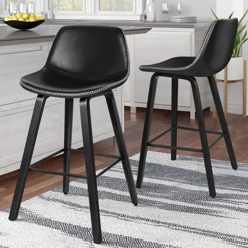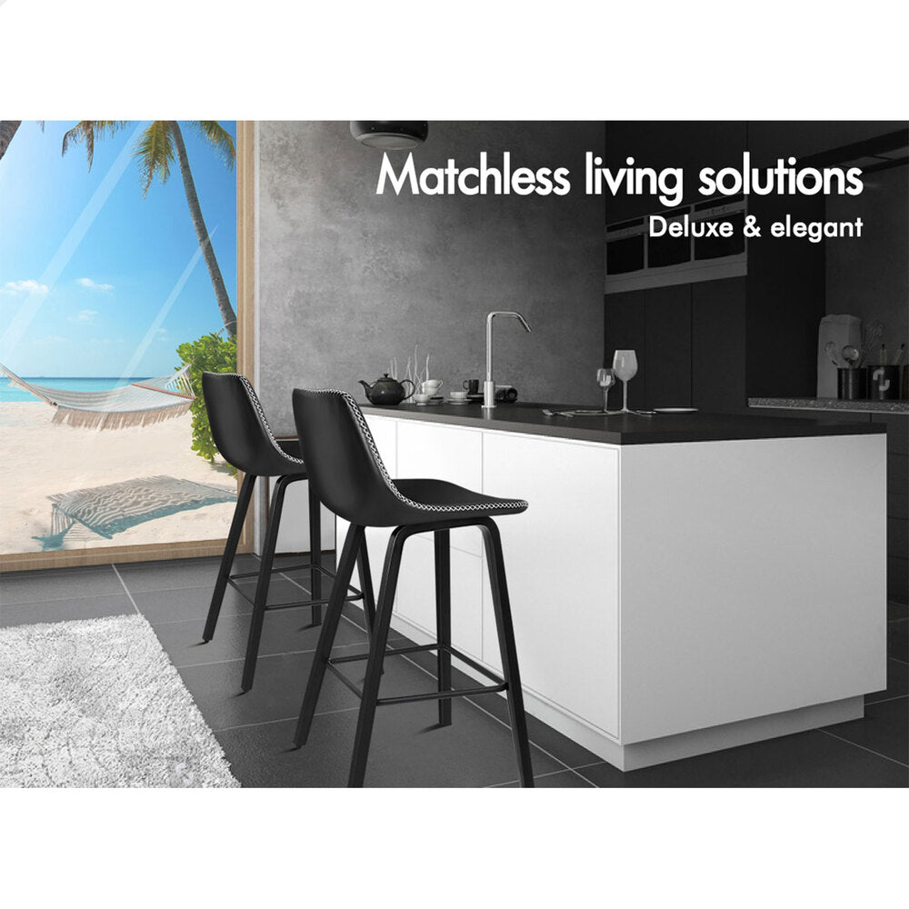 2x ALFORDSON Bar Stools Faux Leather All Black