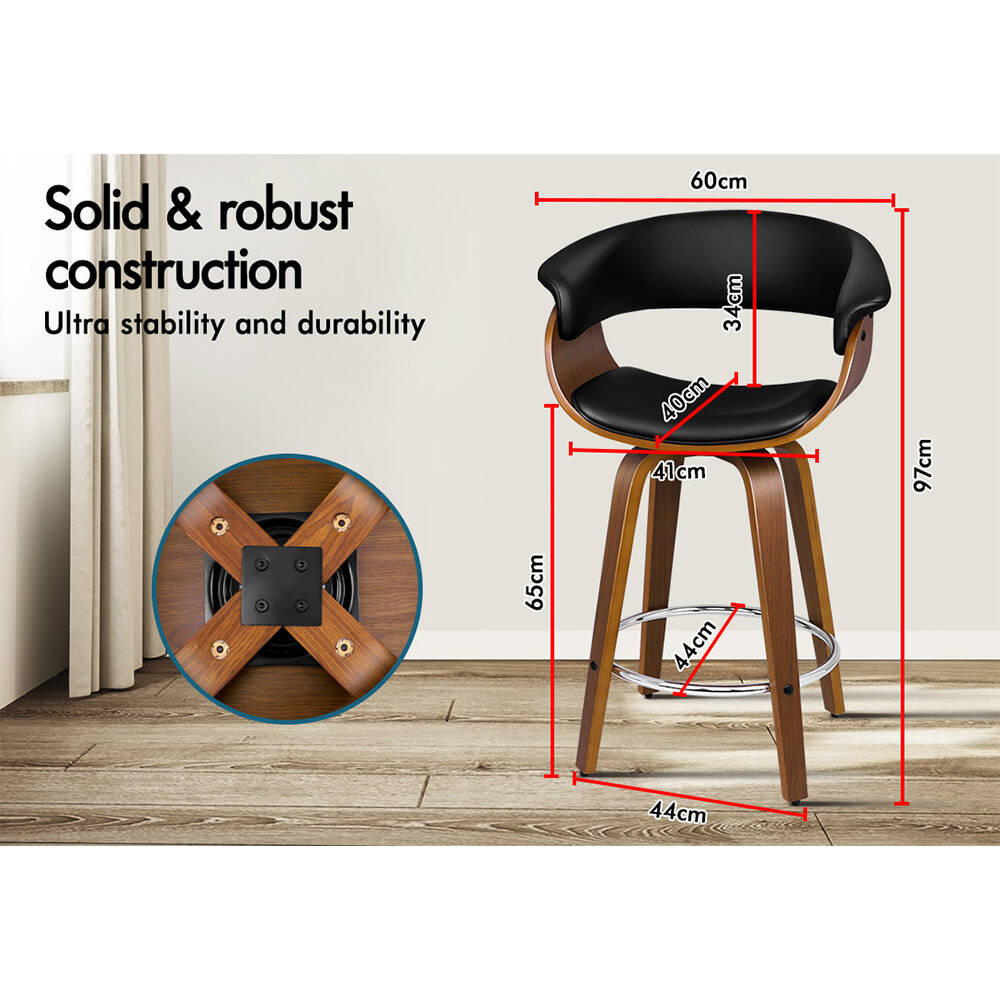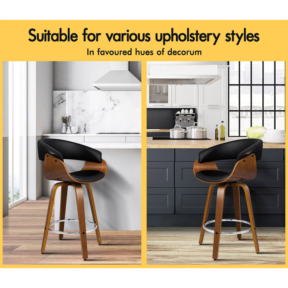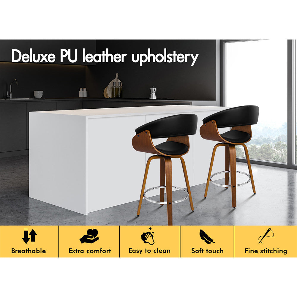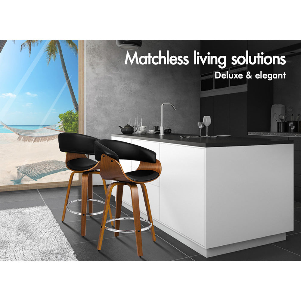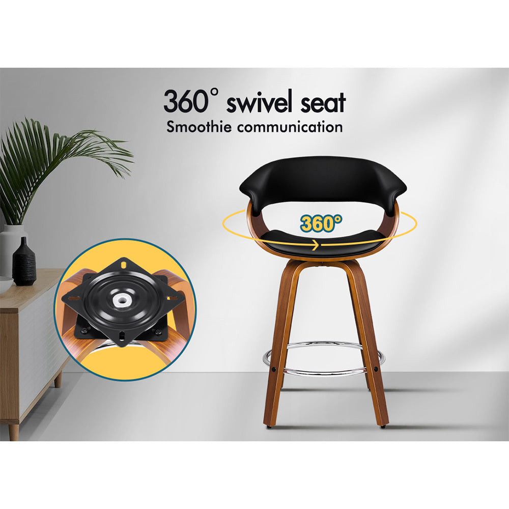 Alfordson 2x Wooden Bar Stools Dacre Kitchen Swivel Dining Chair BLACK