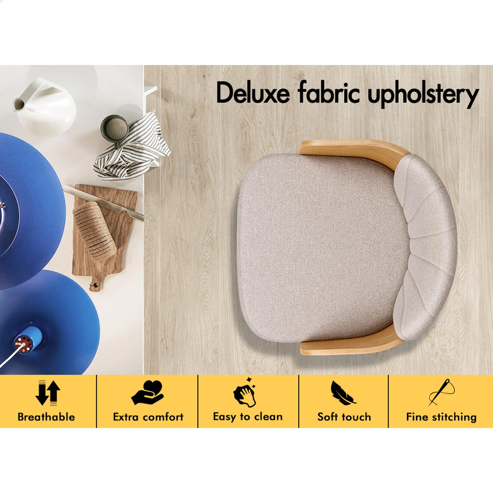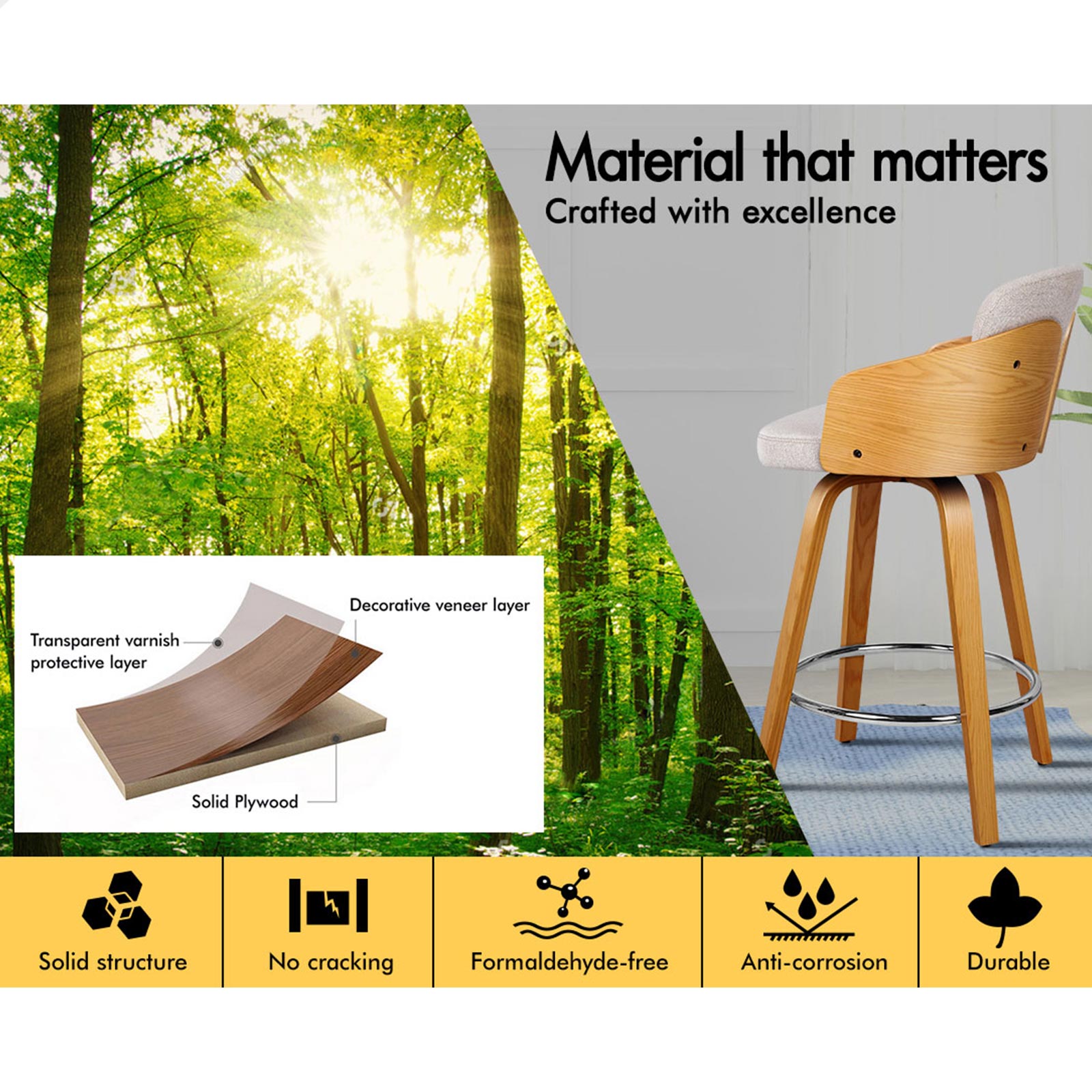 * Seat material: Solid plywood and fabric