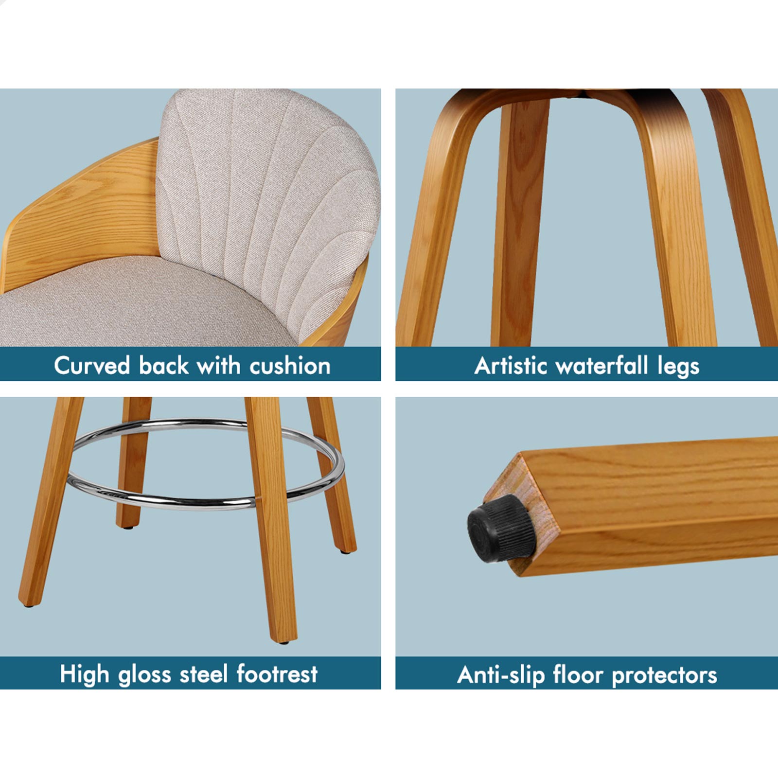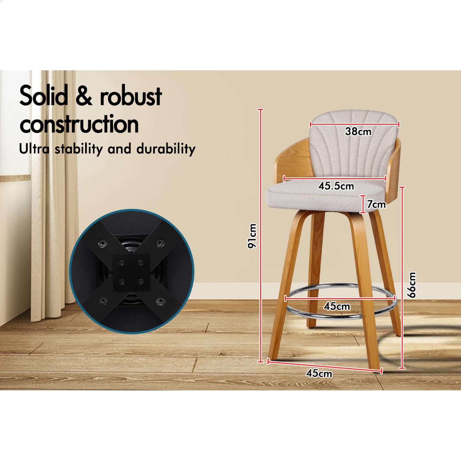 As always, we have no compromise on materials used. Enhanced wooden base, made of solid plywood, ensures ultra stability with long-lasting durability. Your floor is also aptly protected with anti-slip plastic floor protectors attached to each leg of the bar stool.