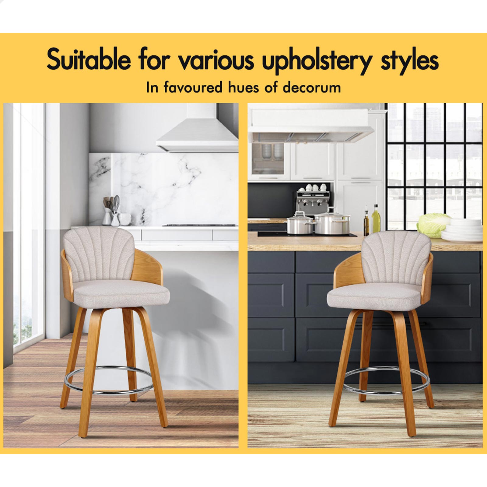 Not only with its iconic design and timeless appeal, it is also cozy and practical. Upholstered in premium fabric, the seat and backrest are richly padded with high-resilience foam and comfortable. Thanks to its high-density foam, they provide adequate support in the right places for a delightful sitting experience. Together with its heavy duty and swivel mechanism, this bar stool can be rotated all around for easy facing in any direction, which makes your conversations smoothie.