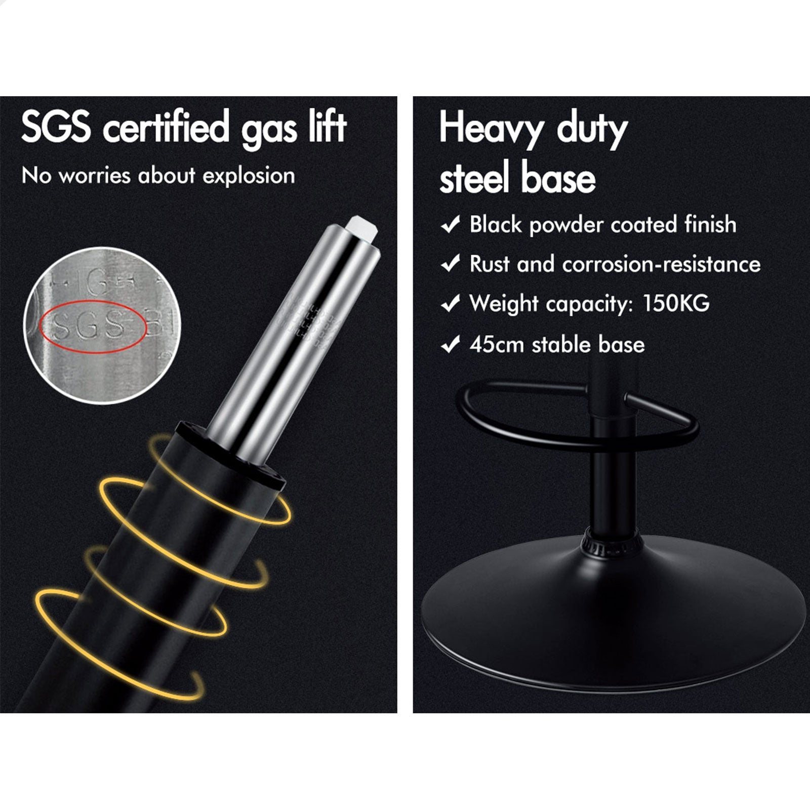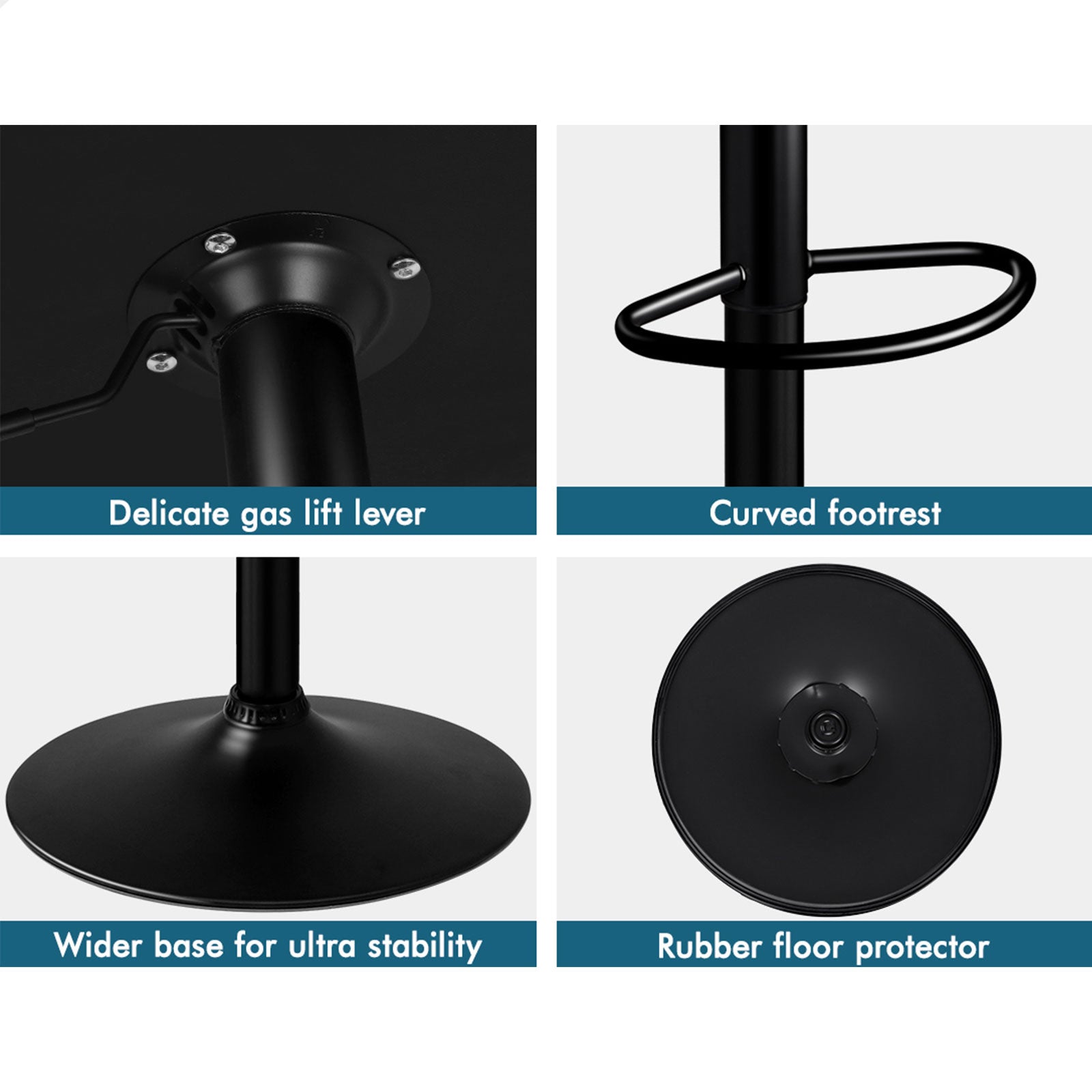 As always, we have no compromise on materials used. Diameter of the base is increased, resulting in larger supporting area, so the seat becomes more secure and stable with long-lasting durability. Better still, the black powder coated chrome base and footrest complement the stool's modern design. A rubber floor protector ring, embedded in the case, reduces noise and protects your floor by sliding smoothly when you need to move the stool.