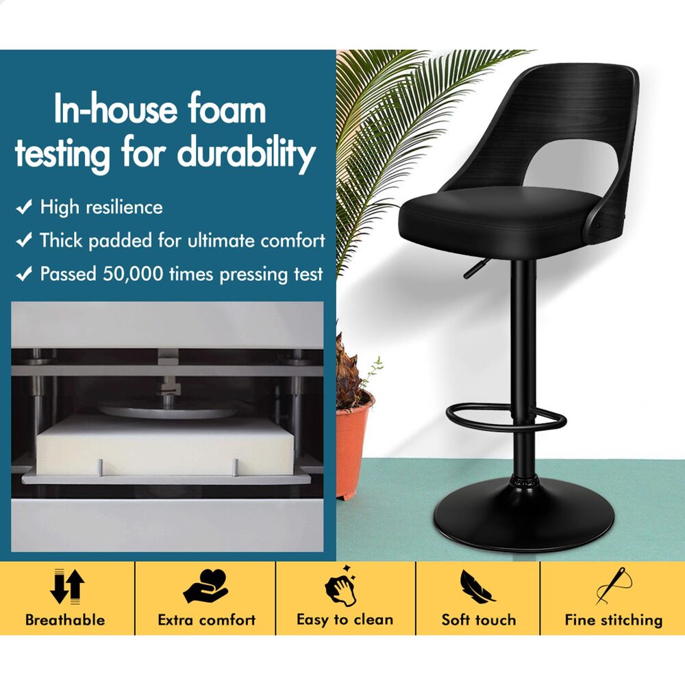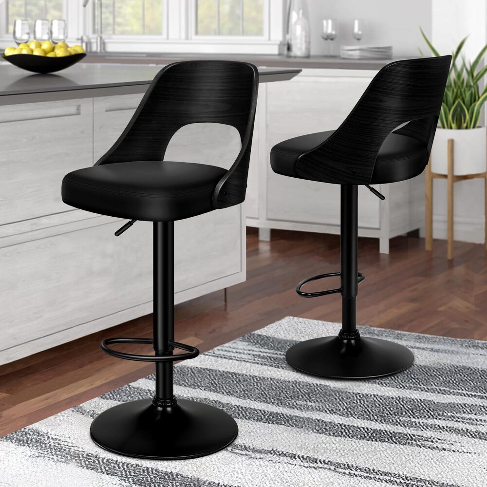 2x ALFORDSON Bar Stools Wooden Leather All Black