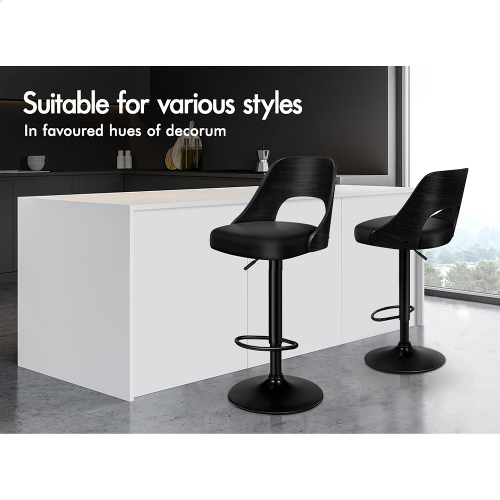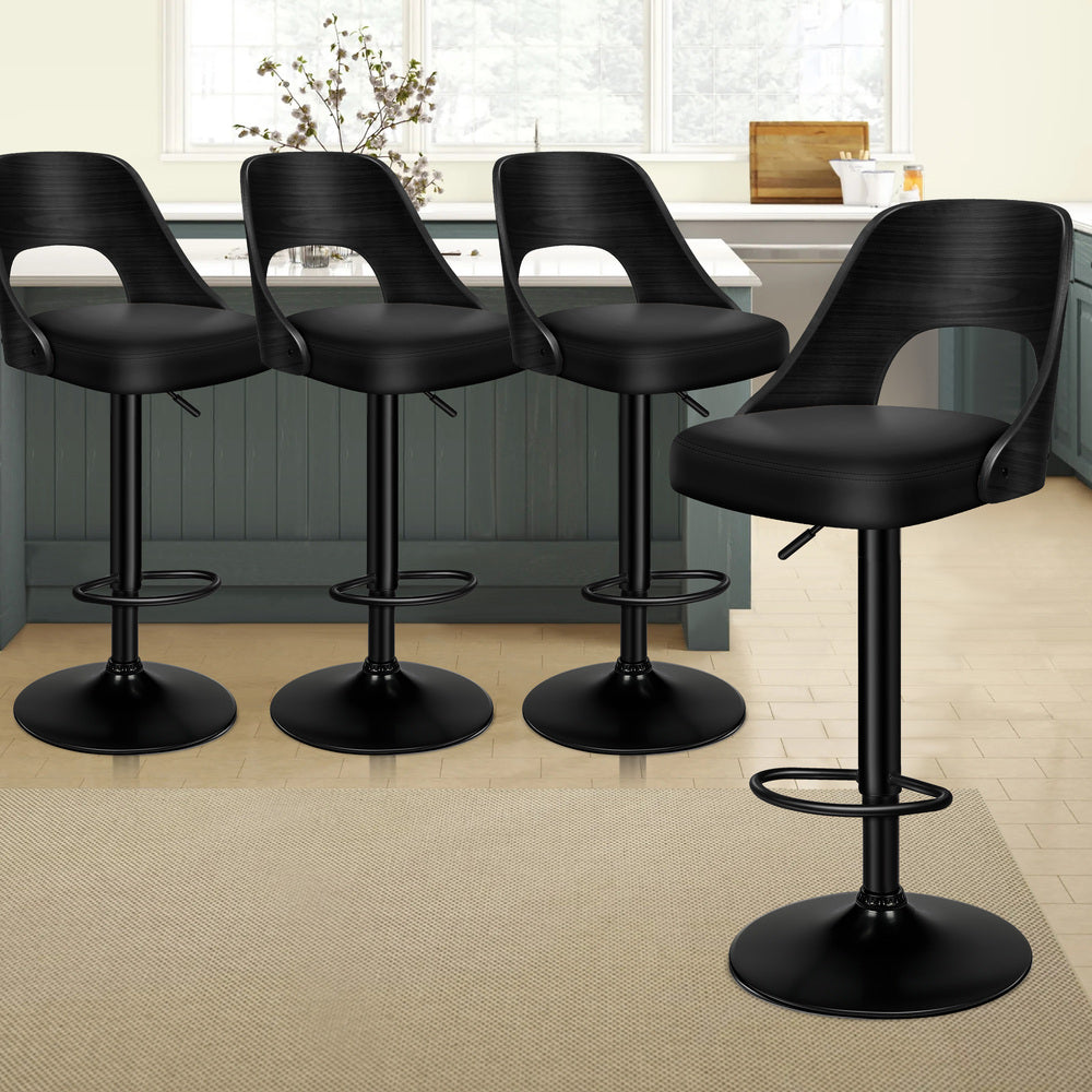 4x ALFORDSON Bar Stools Wooden Leather All Black