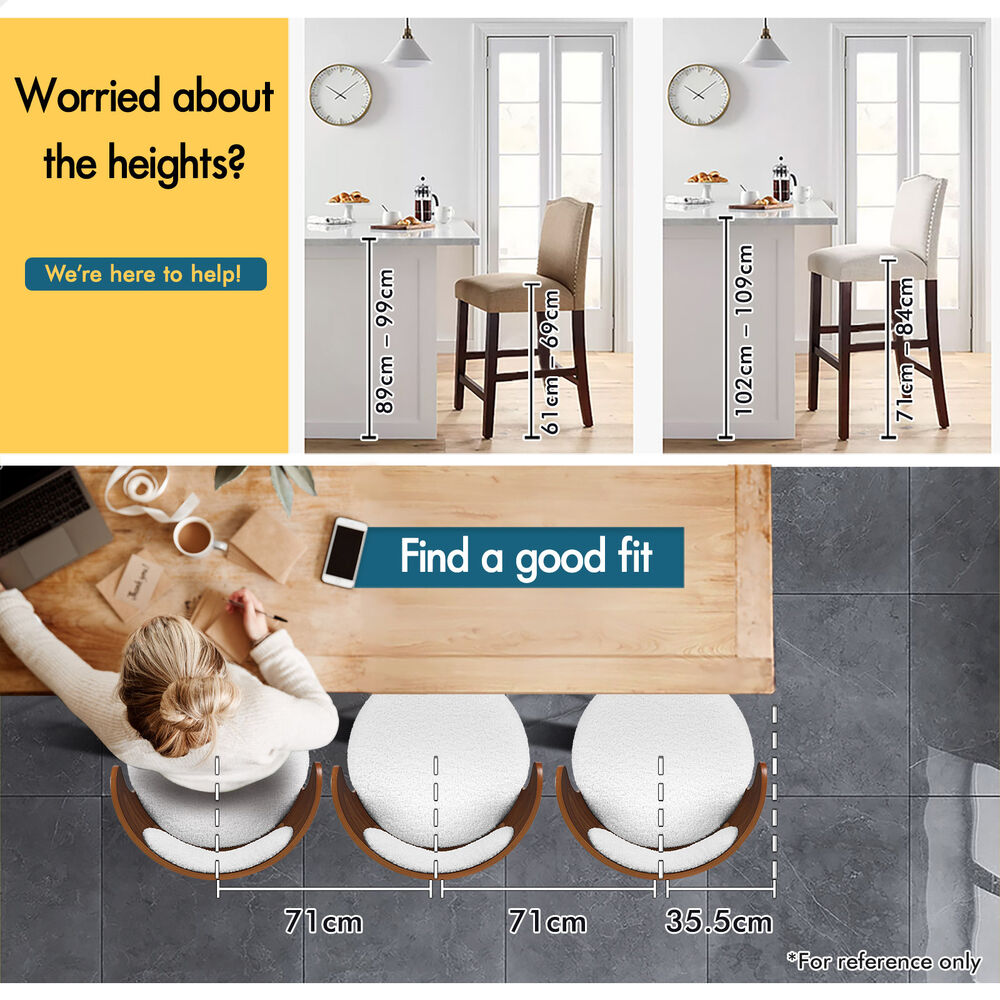 ALFORDSON 2x Bar Stool Kitchen Swivel Chair Wooden Boucle Ramiro White