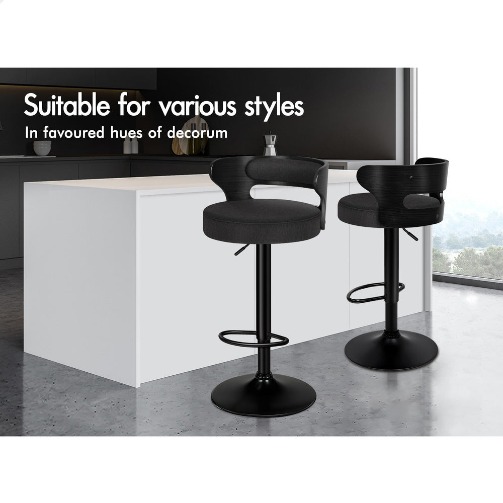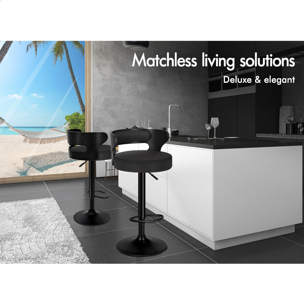 2x ALFORDSON Bar Stools Linen Fabric All Black