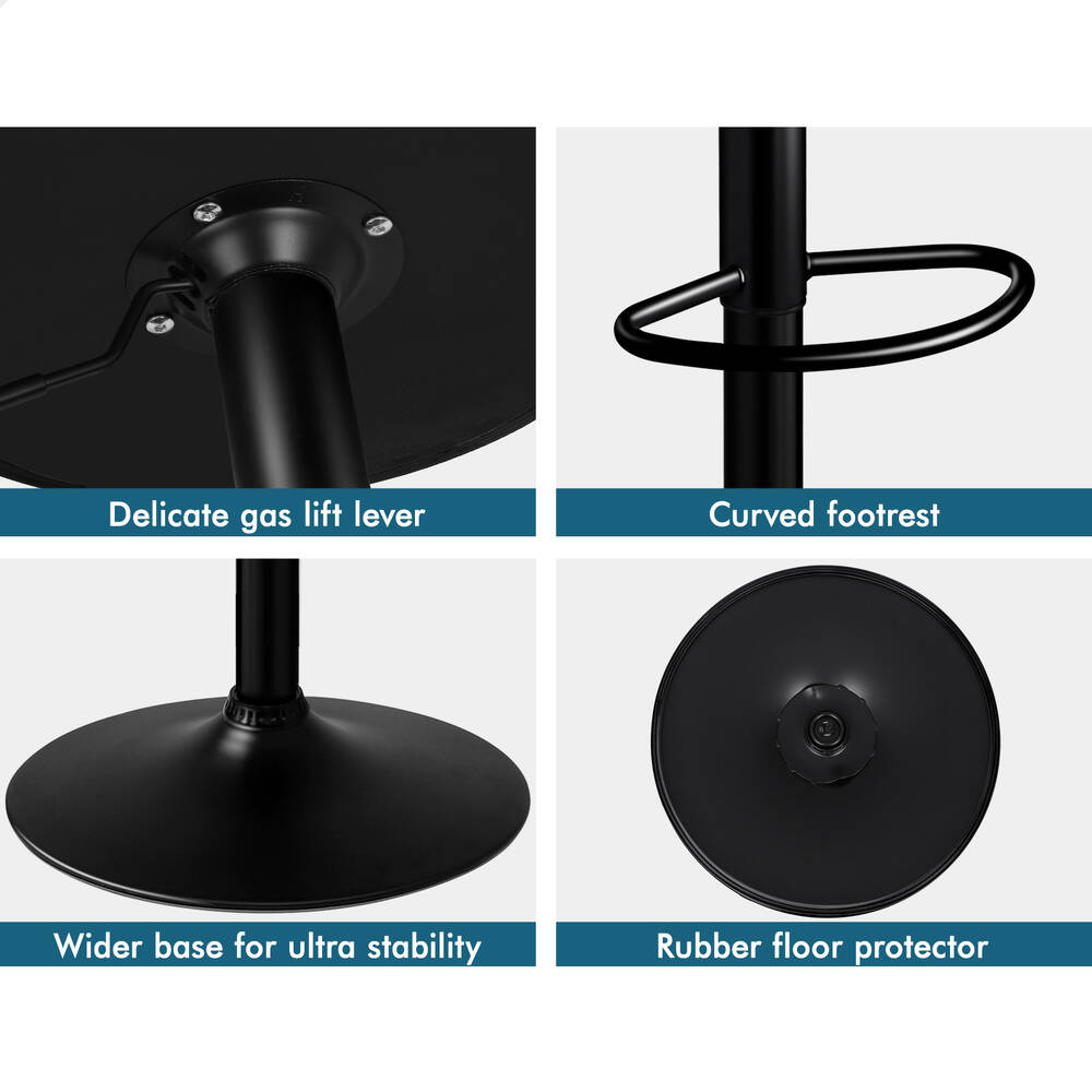 As always, we have no compromise on materials used. Diameter of the base is increased, resulting in larger supporting area, so the seat becomes more secure and stable with long-lasting durability. Better still, the black powder coated chrome base and footrest complement the stool's modern design. A rubber floor protector ring, embedded in the case, reduces noise and protects your floor by sliding smoothly when you need to move the stool.