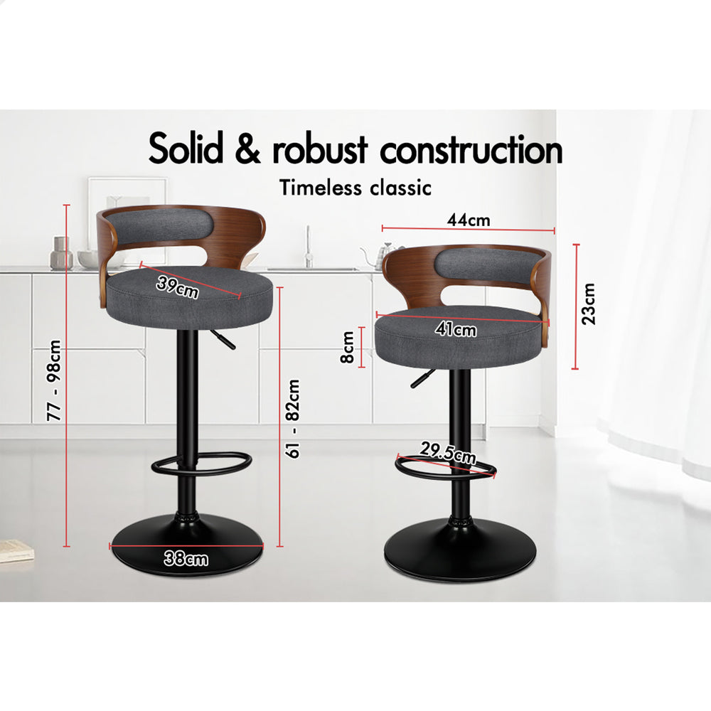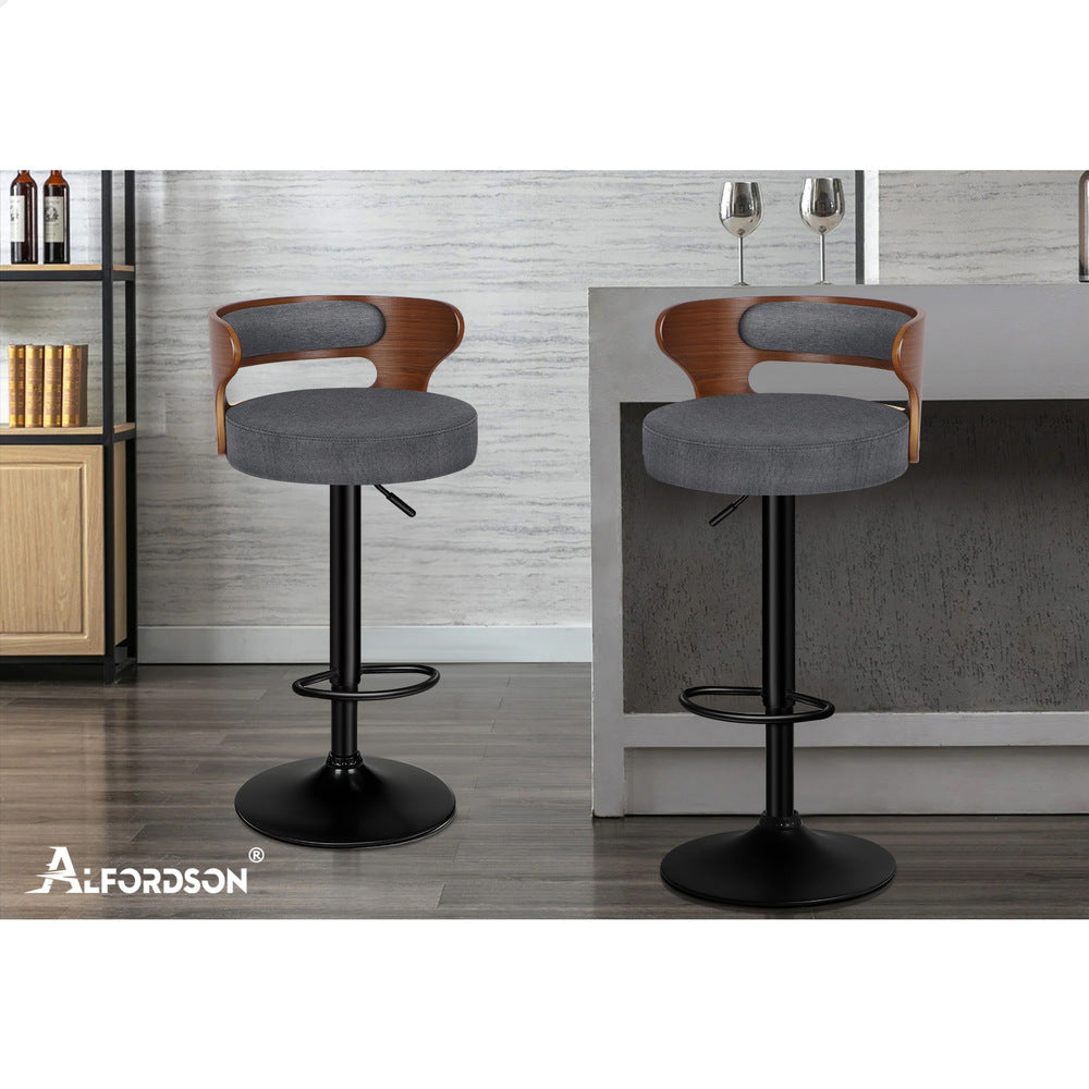 2x ALFORDSON Bar Stools Linen Fabric Grey