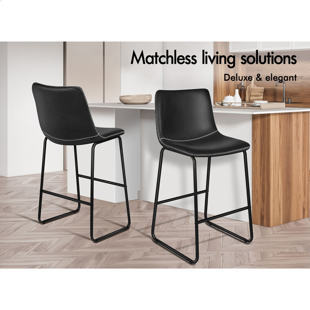 ALFORDSON 2x Bar Stools 66cm Kitchen Counter Metal Vintage Dining Chairs Black