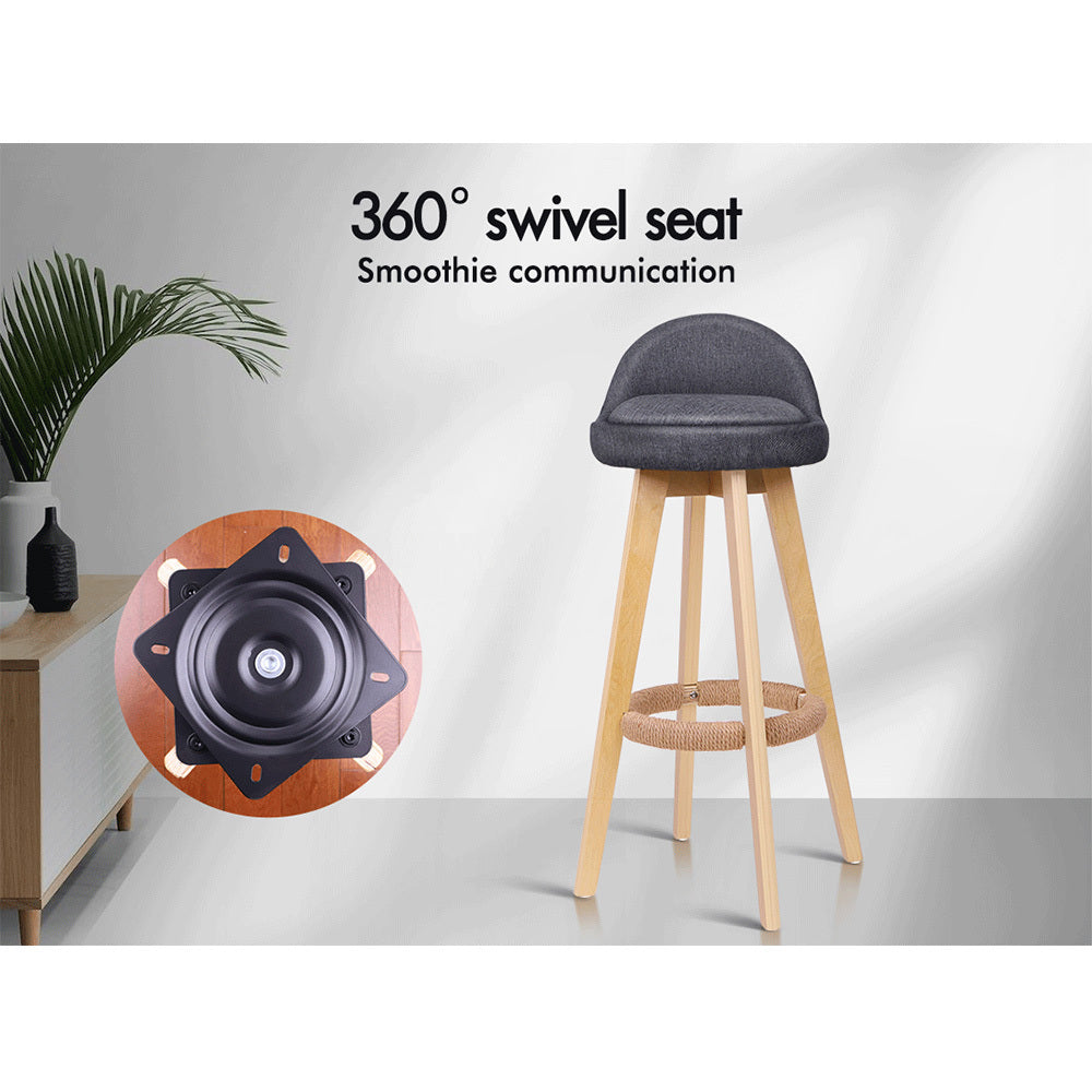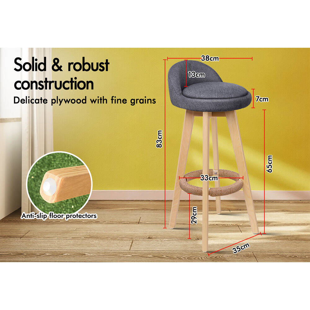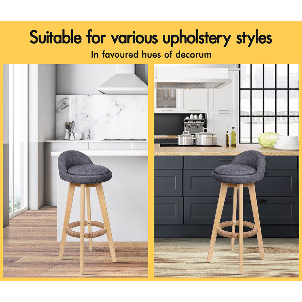 Alfordson 2x Swivel Bar Stools Liam Kitchen Dining Chair Wooden Fabric Grey