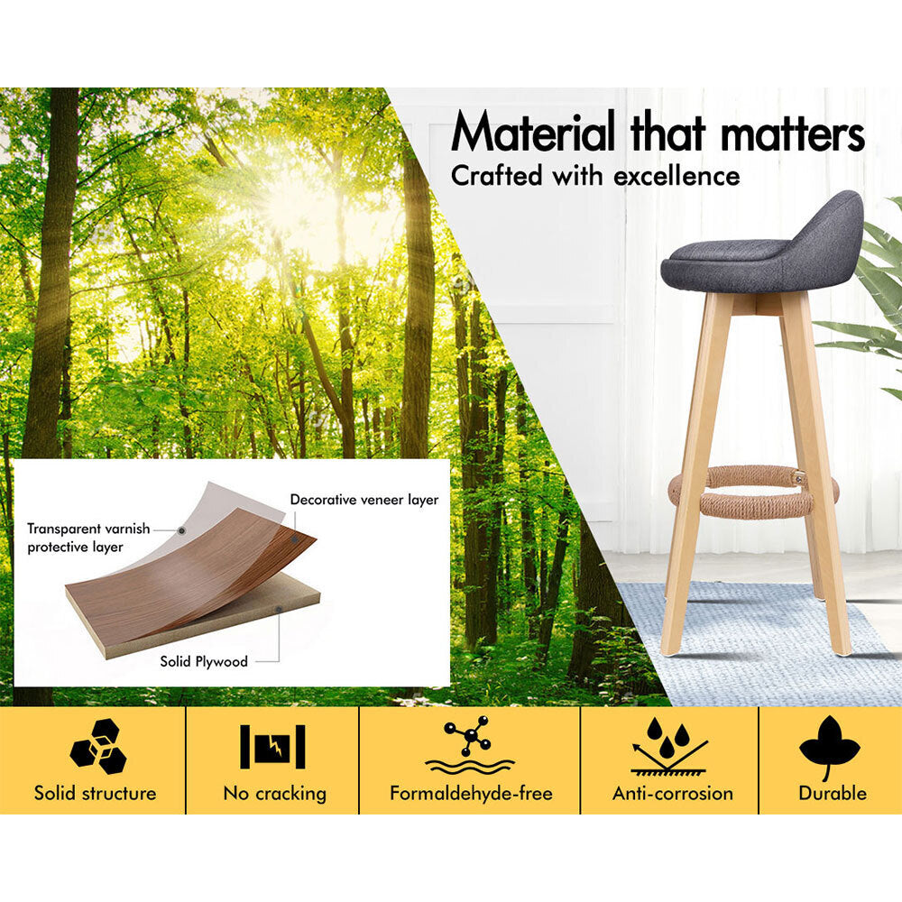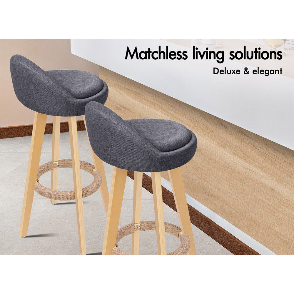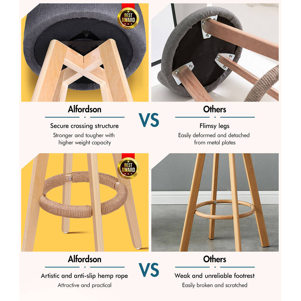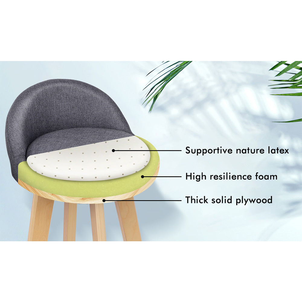 Alfordson 2x Swivel Bar Stools Liam Kitchen Dining Chair Wooden Fabric Grey