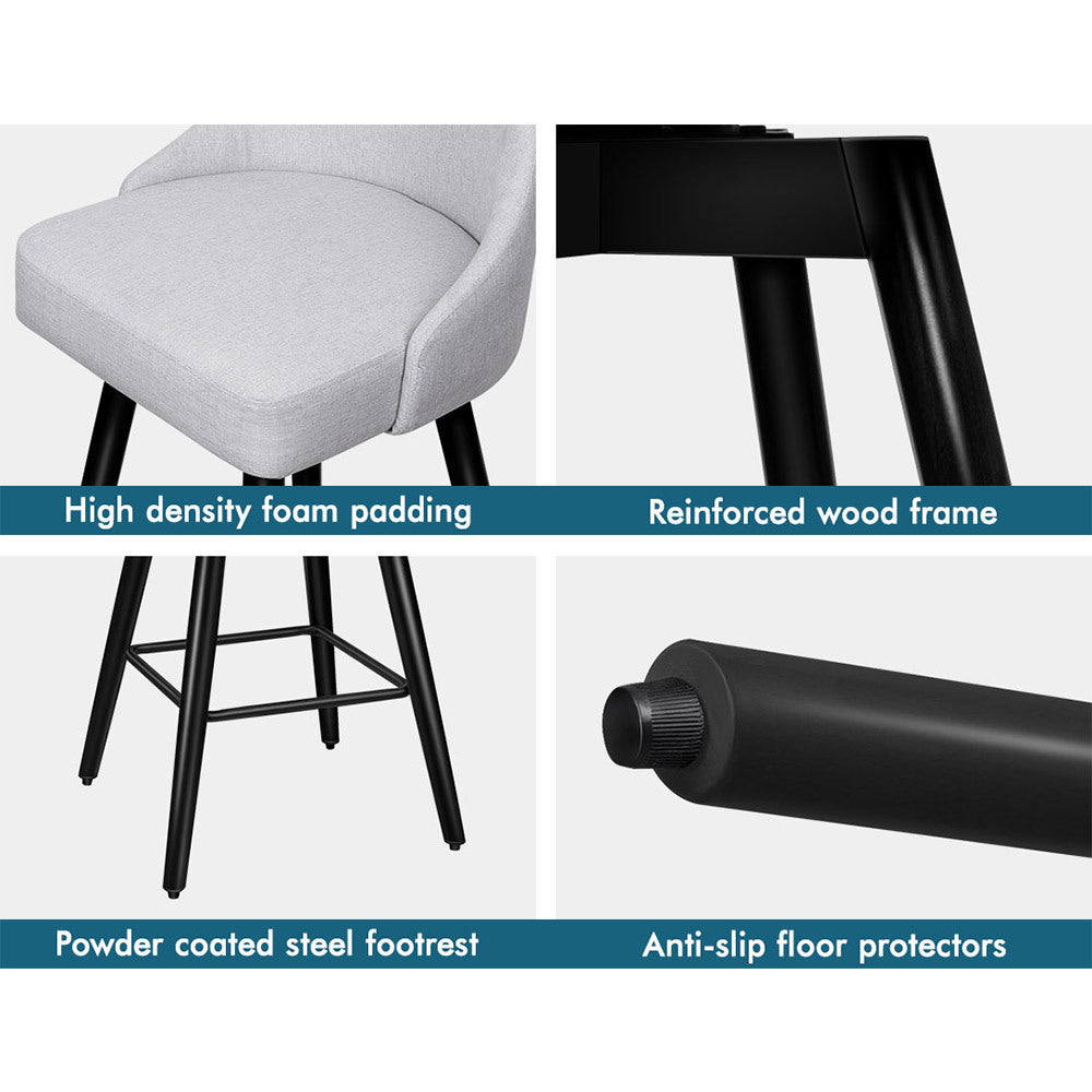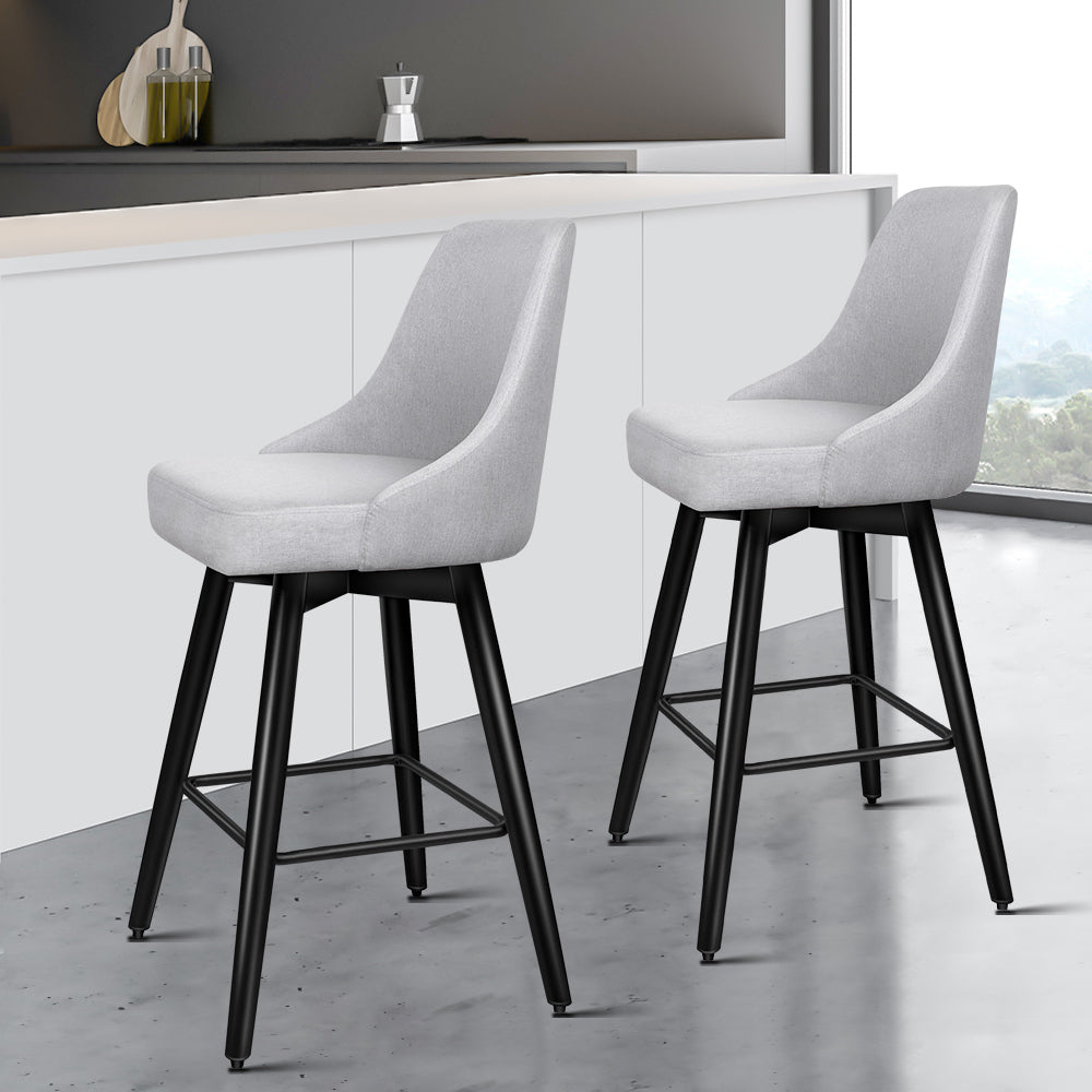 ALFORDSON 2x Swivel Bar Stools Kitchen Dining Chair Cafe Wooden LIGHT GREY