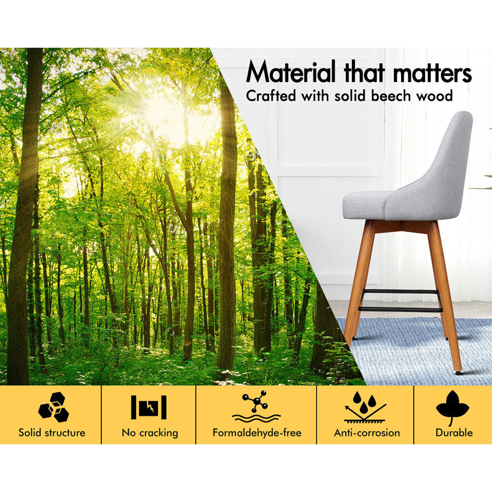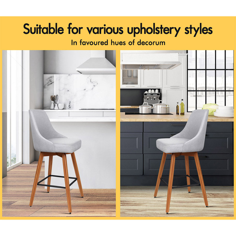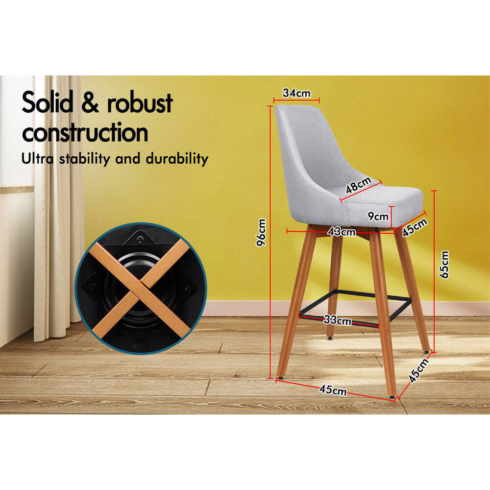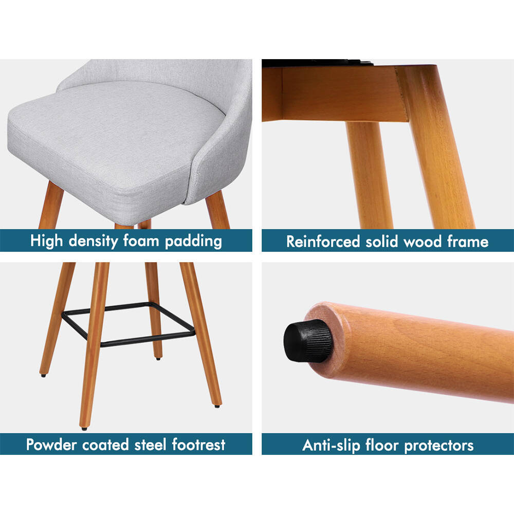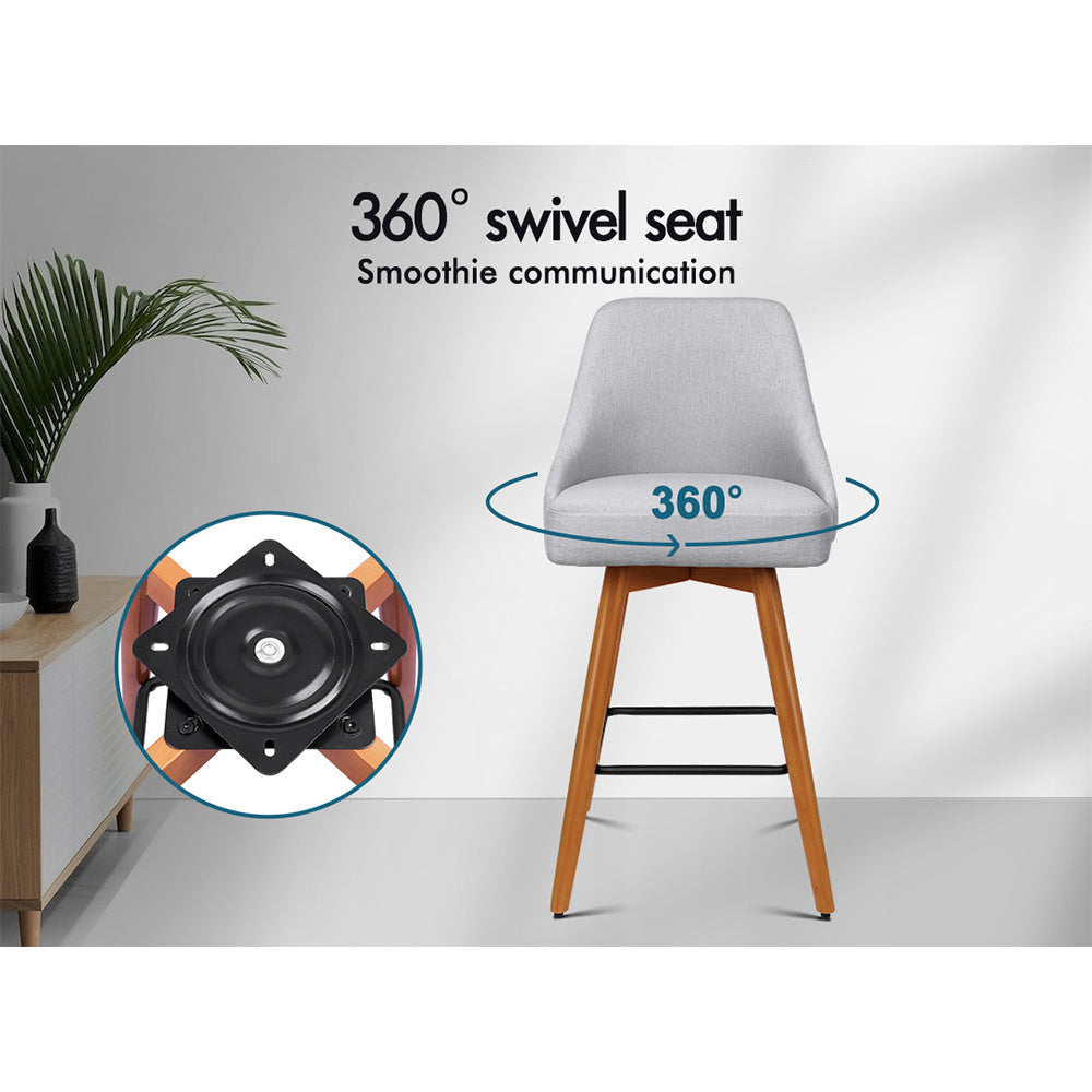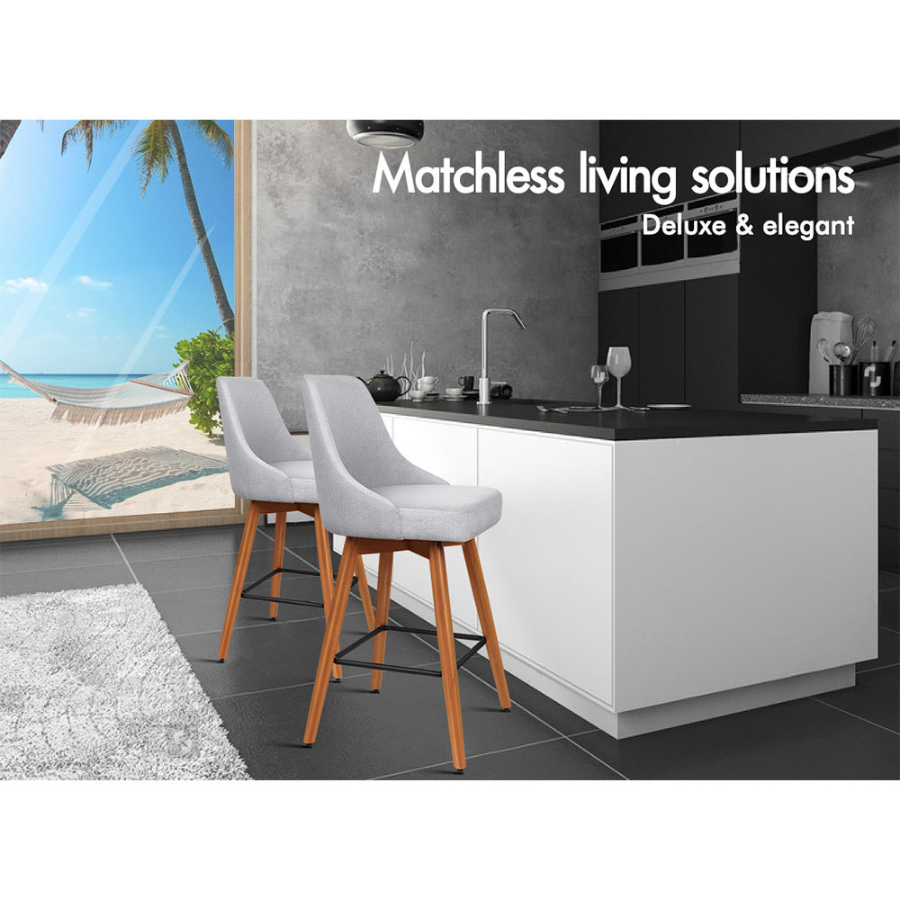 Alfordson 2x Wooden Bar Stools Ella Kitchen Dining Chair Swivel LIGHT GREY