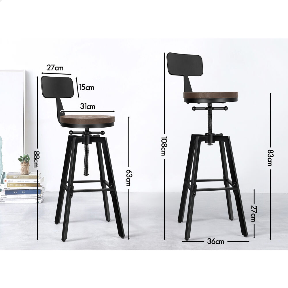 ALFORDSON 2x Bar Stools Ezra Backrest Industrial Black