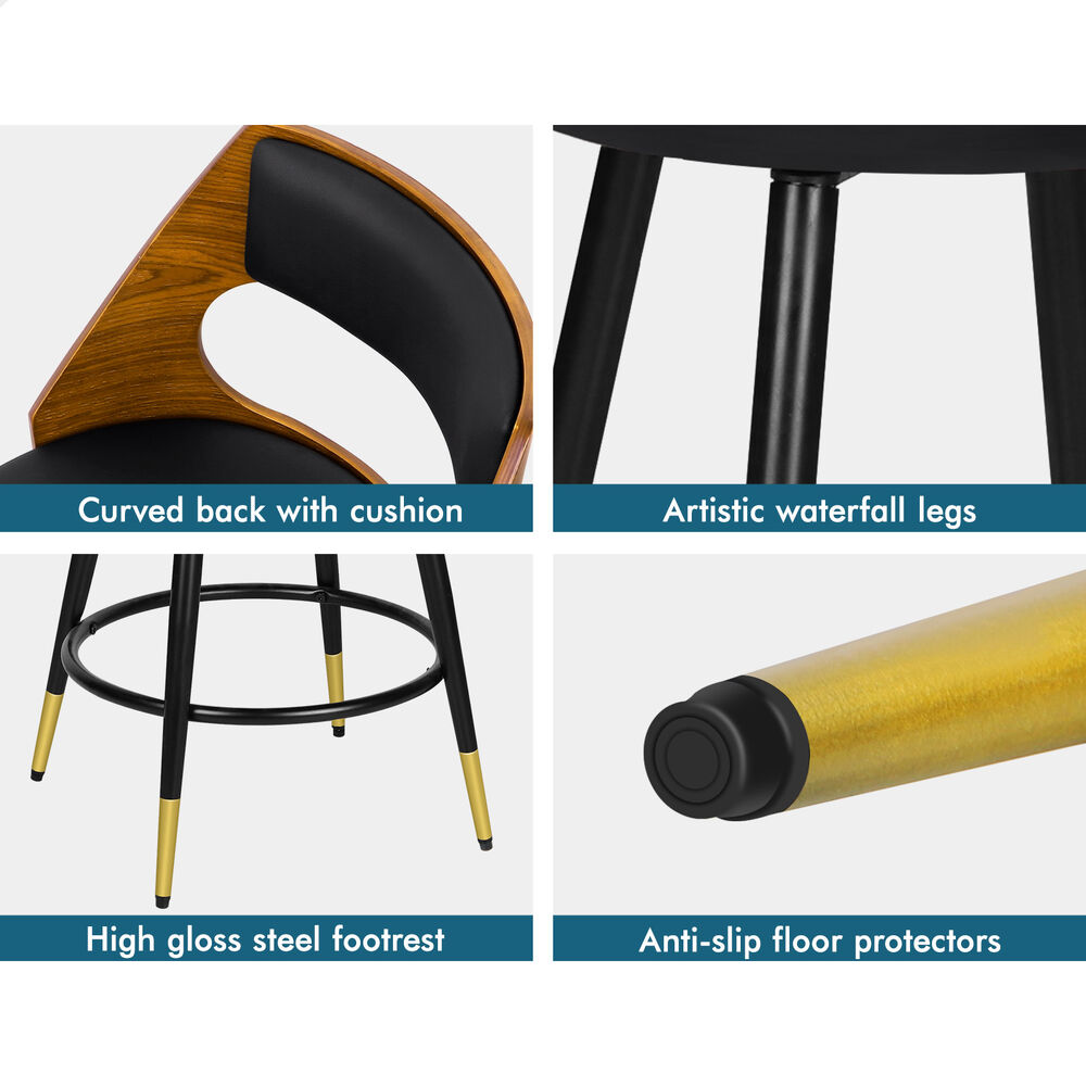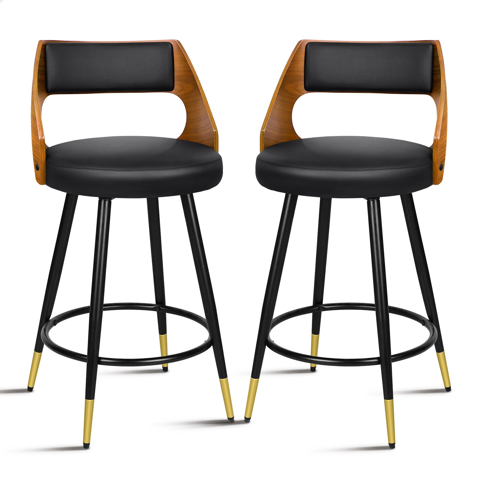 With an electric mix of wood, metal, leather and elegant gold end accents, this bar stool fuses contemporary flair with comfort and matches any furniture taste.