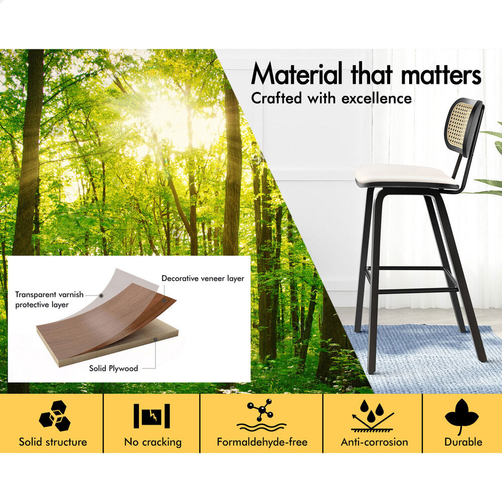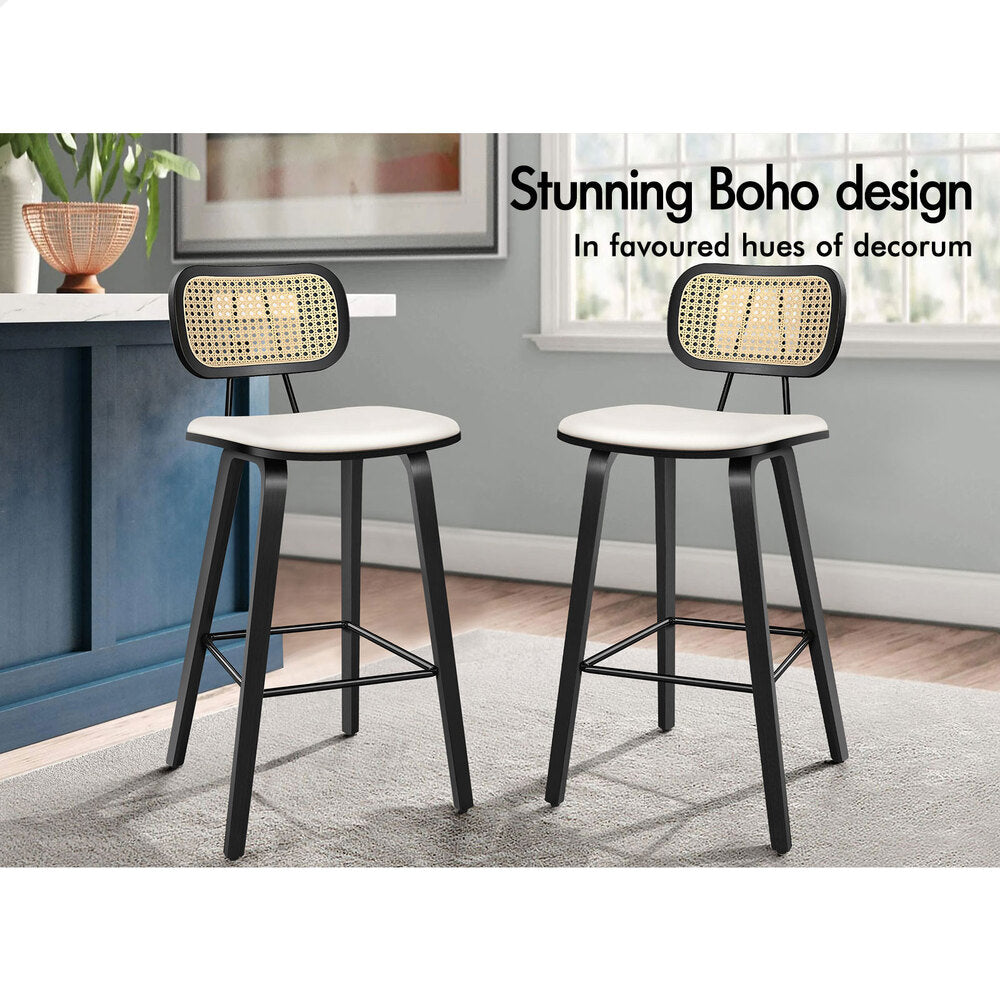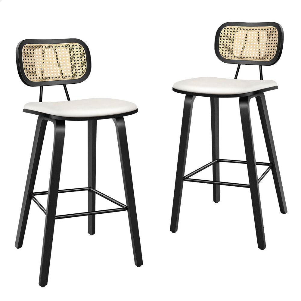 2x ALFORDSON Bar Stools Rattan Backrest Black White
