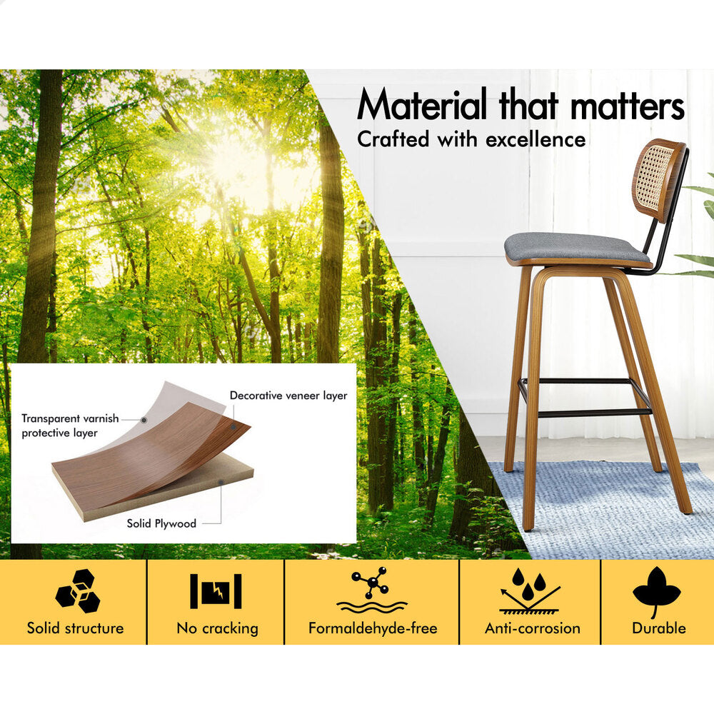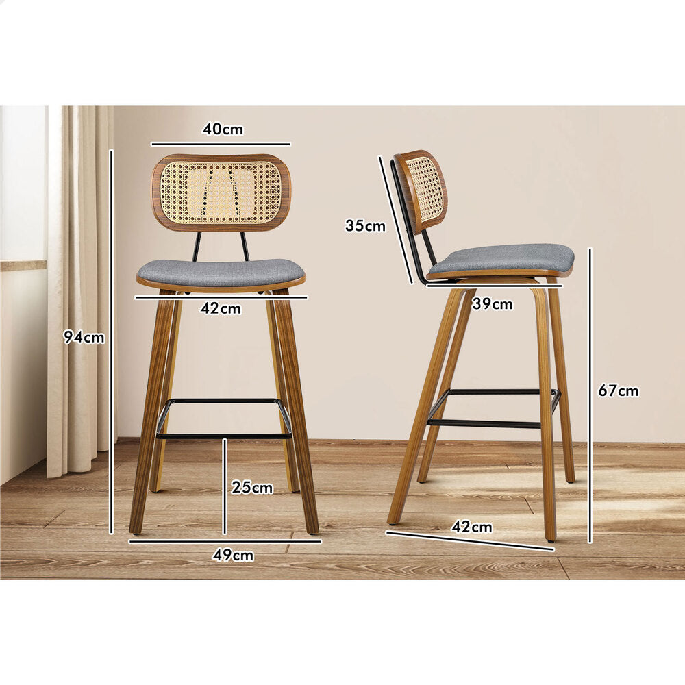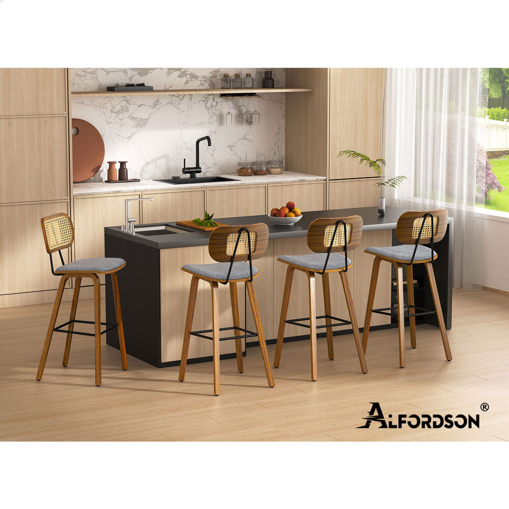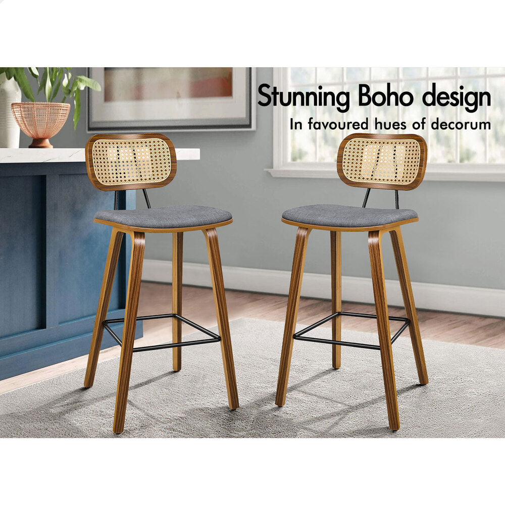 2x ALFORDSON Bar Stools Rattan Backrest Fabric Grey