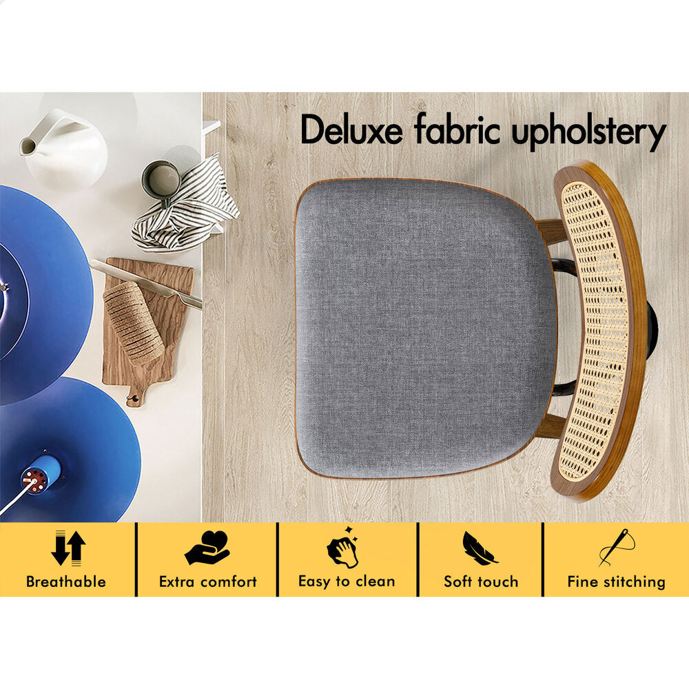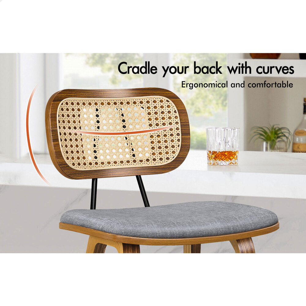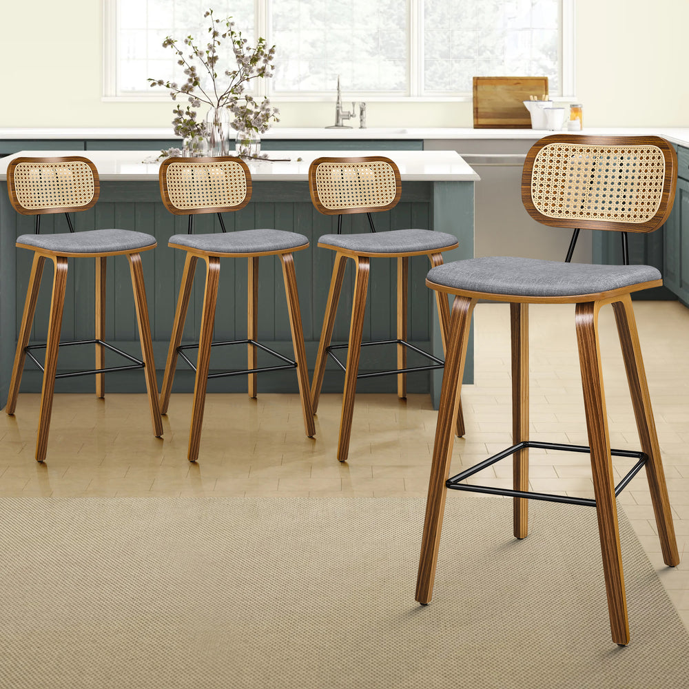 4x ALFORDSON Bar Stools Rattan Backrest Fabric Grey