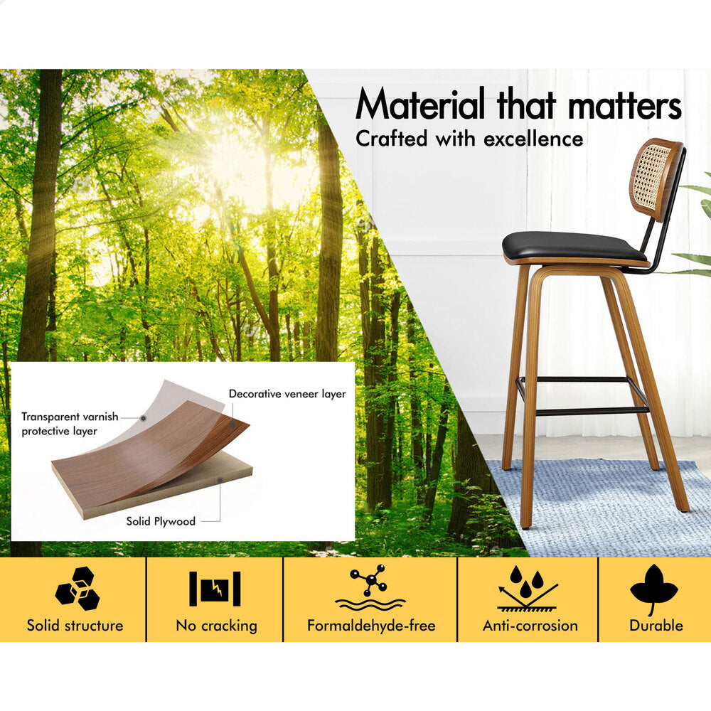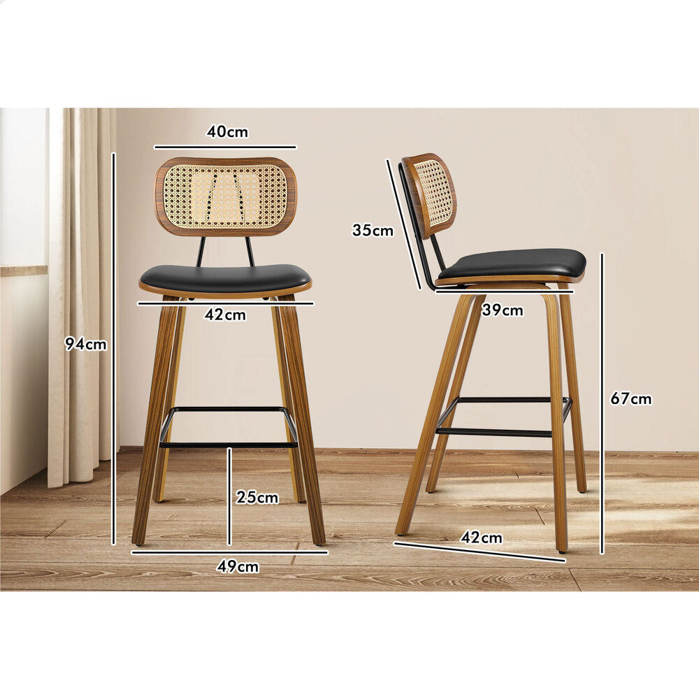 2x ALFORDSON Bar Stools Fiona Rattan Wooden Black
