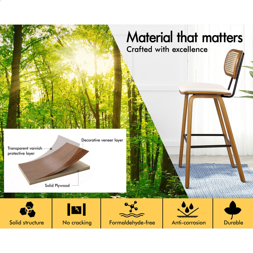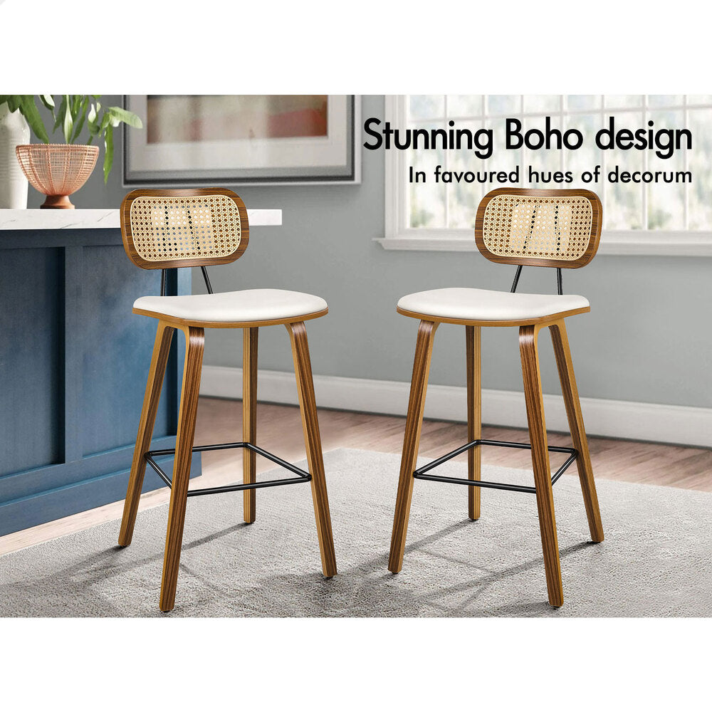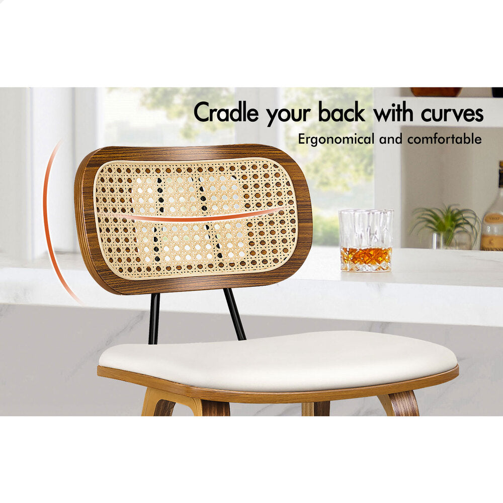 4x ALFORDSON Bar Stools Rattan Backrest Wooden White