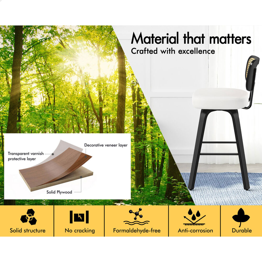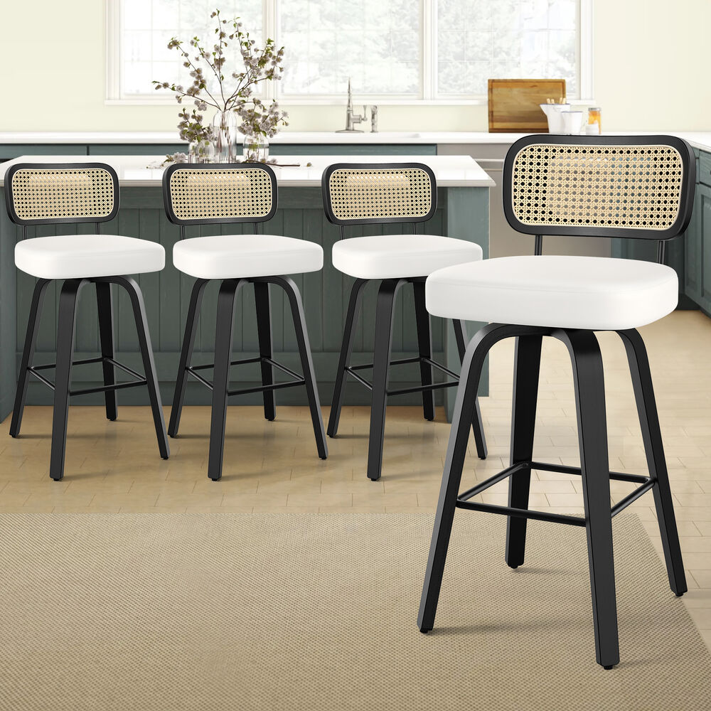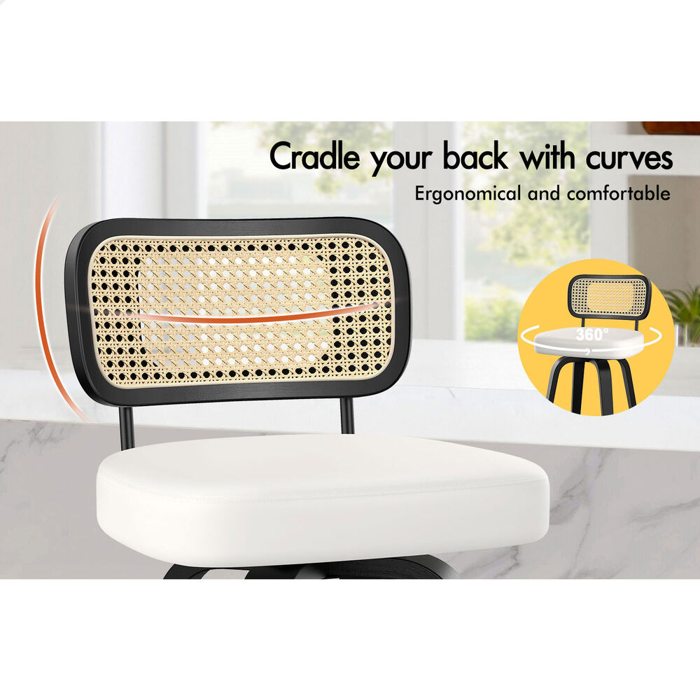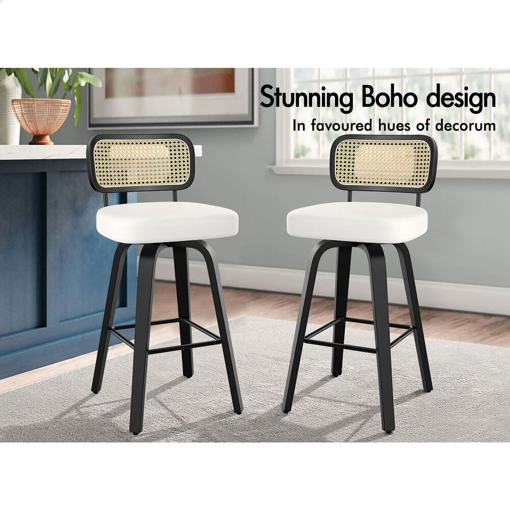 4x ALFORDSON Bar Stools Rattan Leather Black White