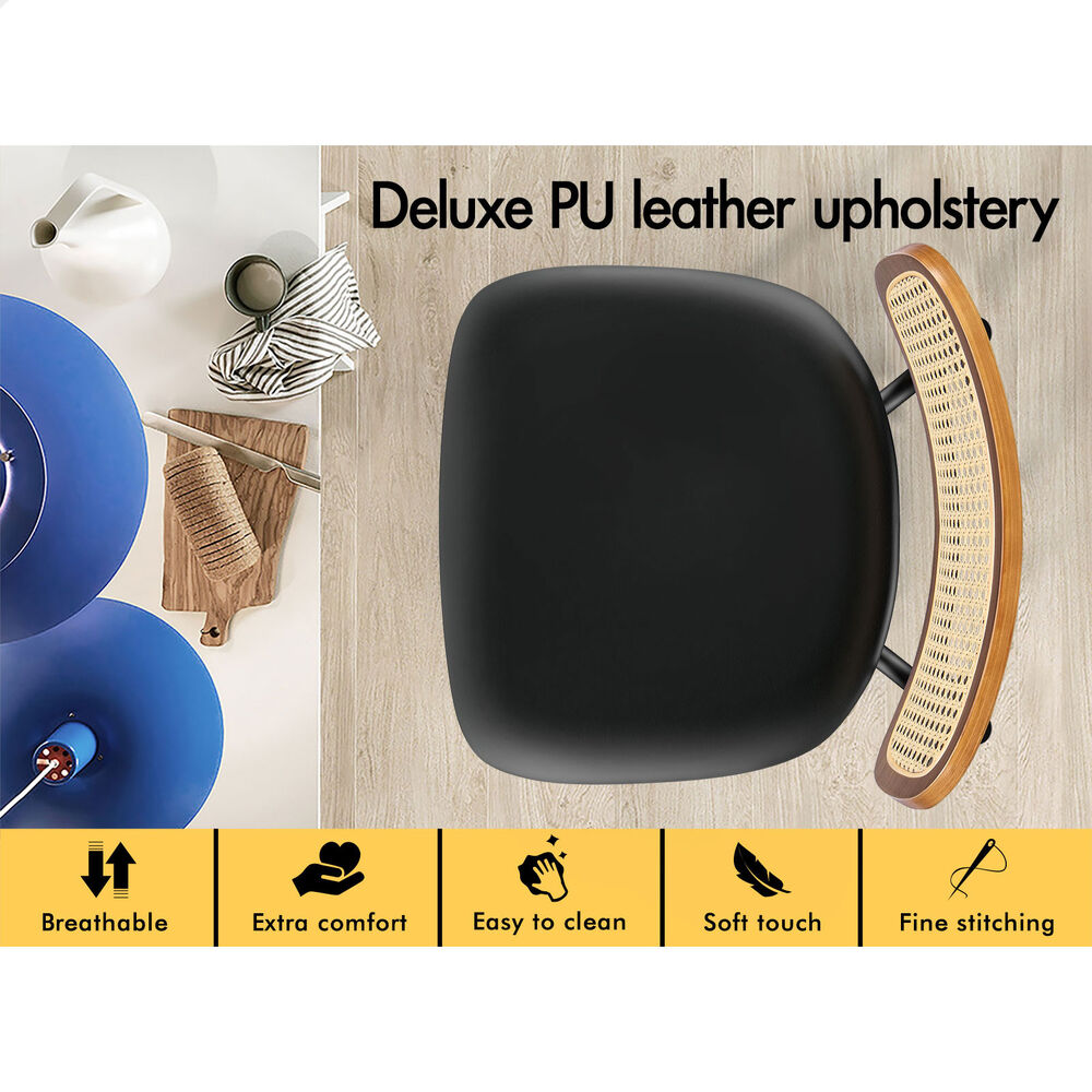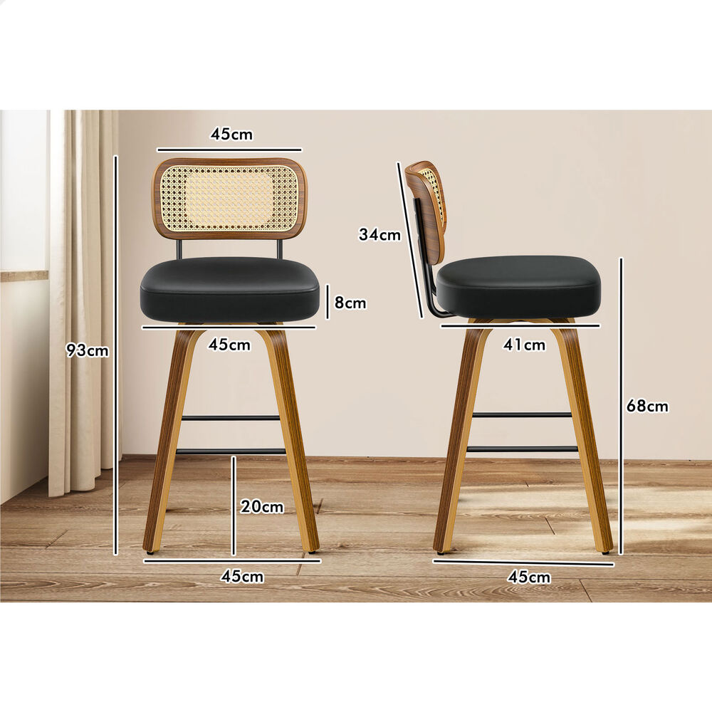 2x ALFORDSON Bar Stools Rattan Leather Wooden Black