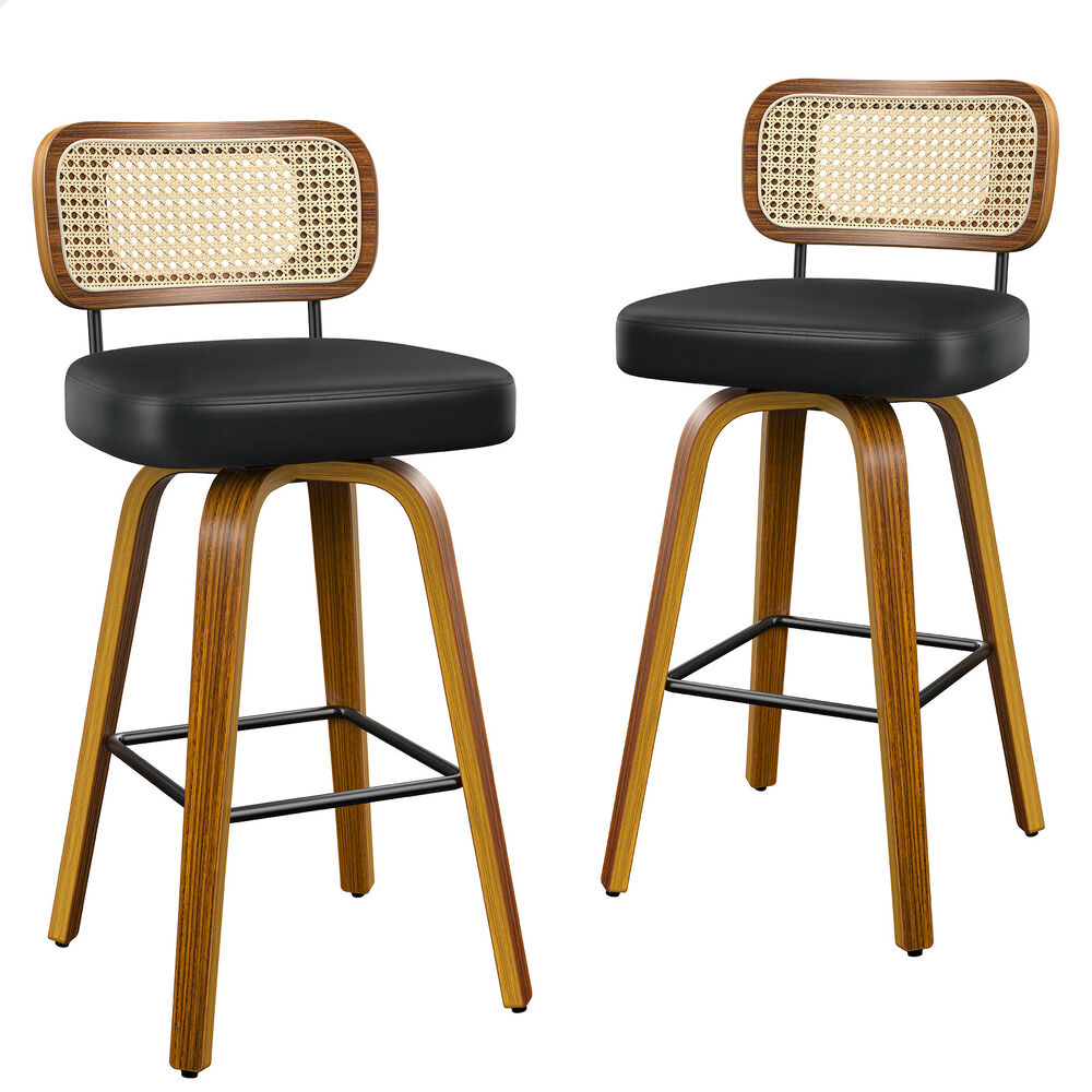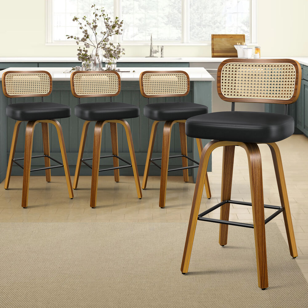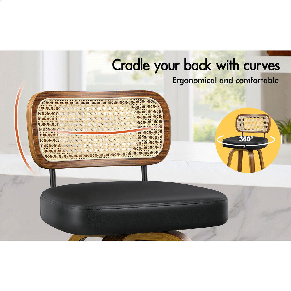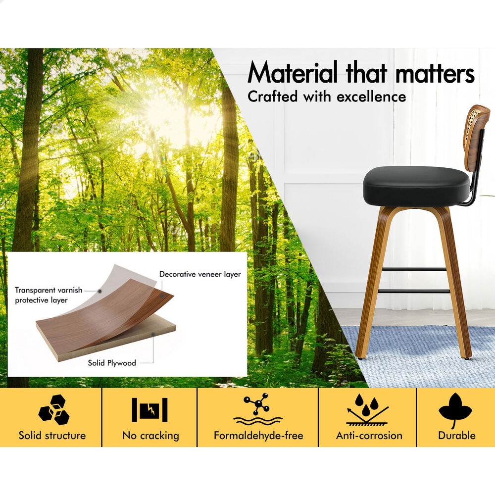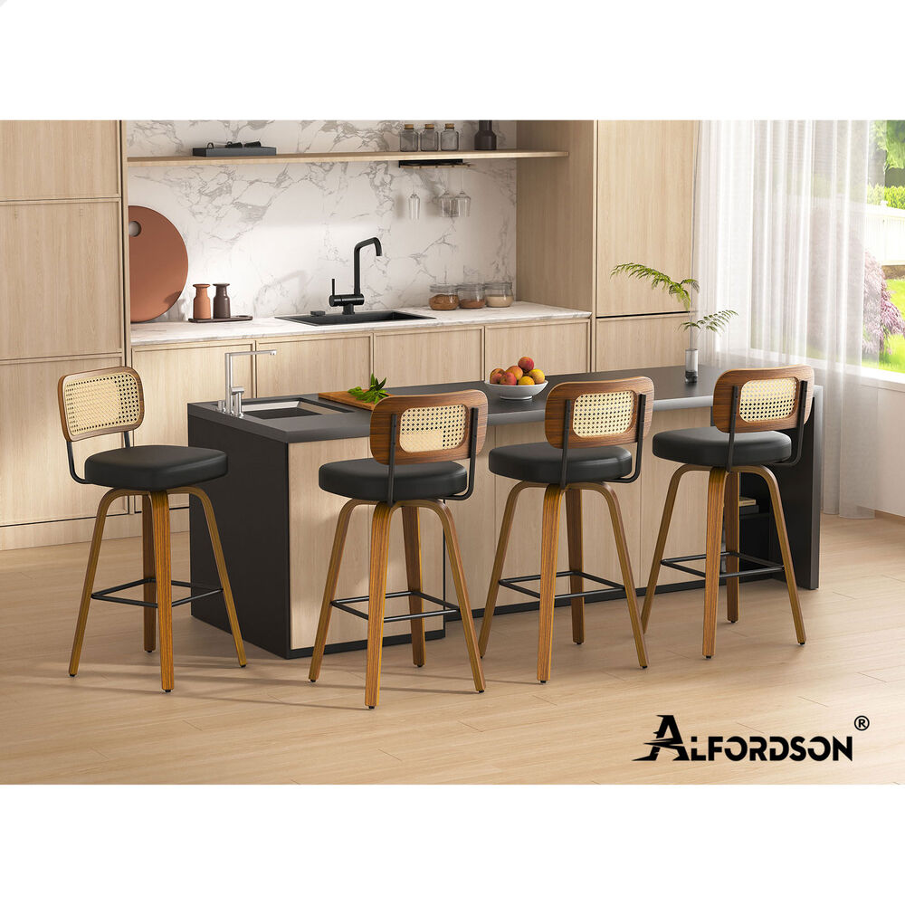 4x ALFORDSON Bar Stools Rattan Leather Wooden Black
