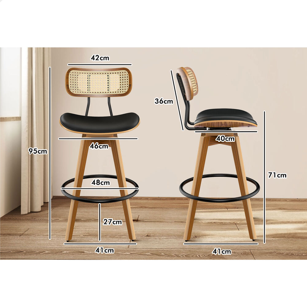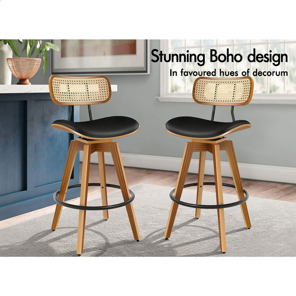 2x ALFORDSON Bar Stools Rattan Swivel Black