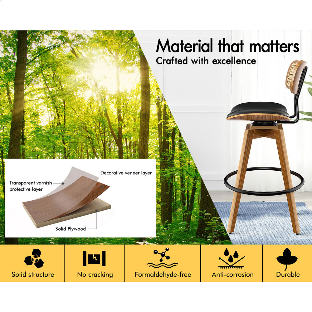 Featuring a stylish and comfortable rattan backrest, this barstool adds both elegance and support. Perfect for those who desire a chic look without sacrificing comfort, this bar stool is an ideal choice for enhancing your dining or entertaining space. Prop up your feet on the footrest as you enjoy brunch or a late-night snack. As always, we have no compromise on materials used. With an extra layer of mesh, the rattan backrest is designed to be long-lasting durability. It also features adjustable leveler on all legs to provide stability on uneven surfaces.