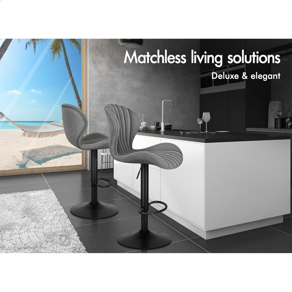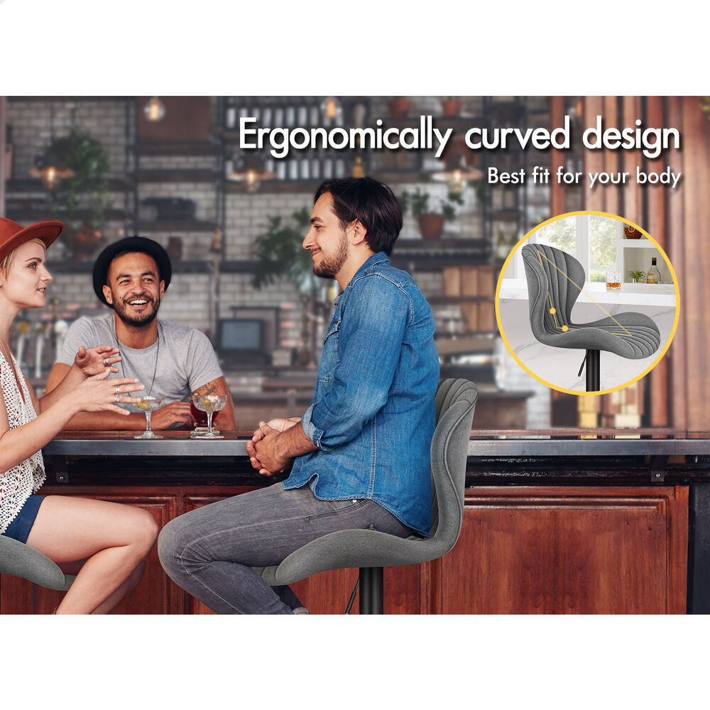 2x ALFORDSON Bar Stools High Back Fabric Grey
