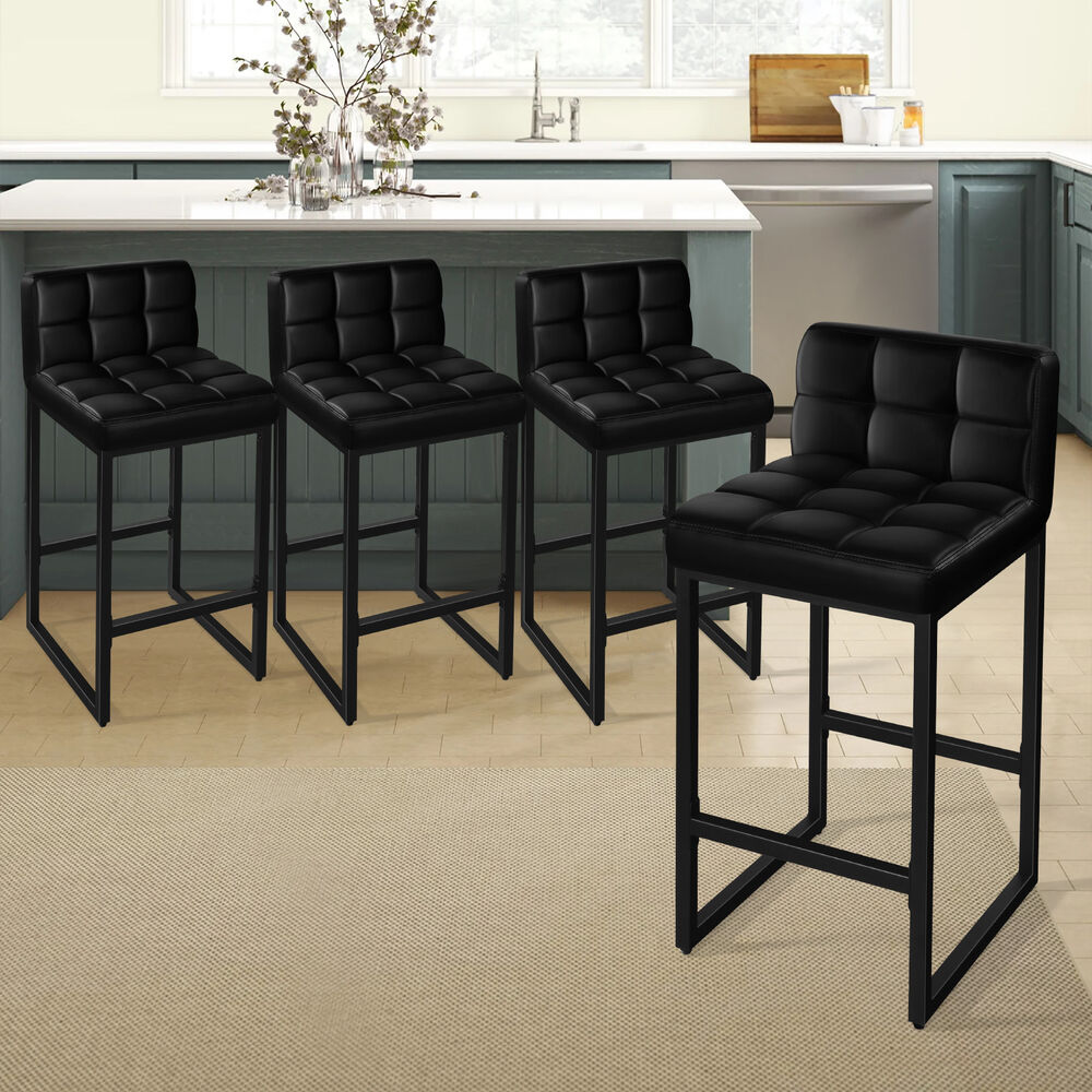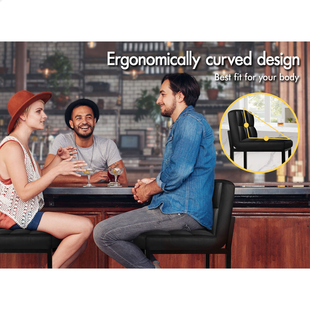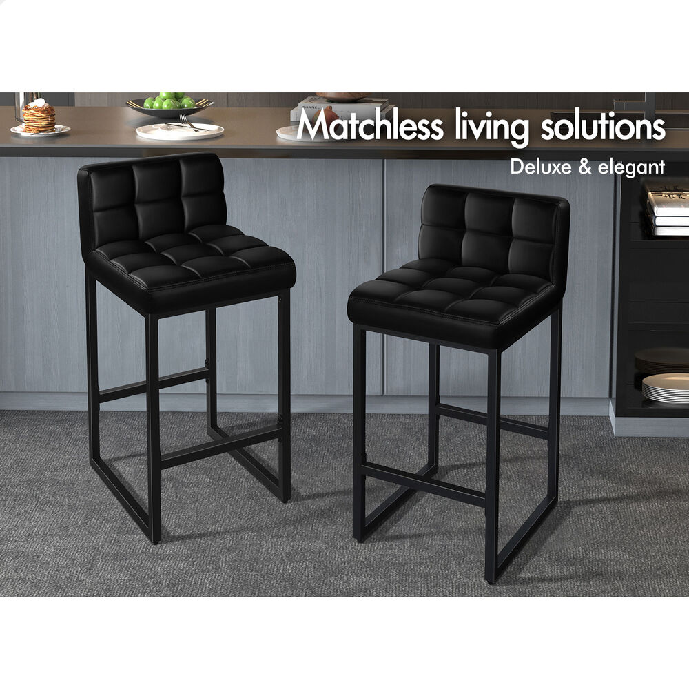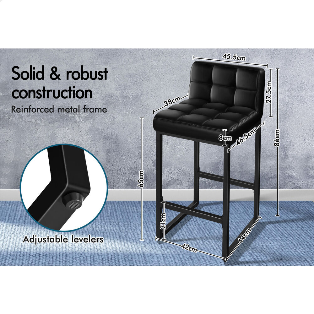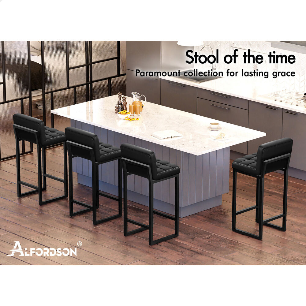 ALFORDSON 4x Bar Stools 65cm Kitchen Counter Metal Leather Dining Chairs Black