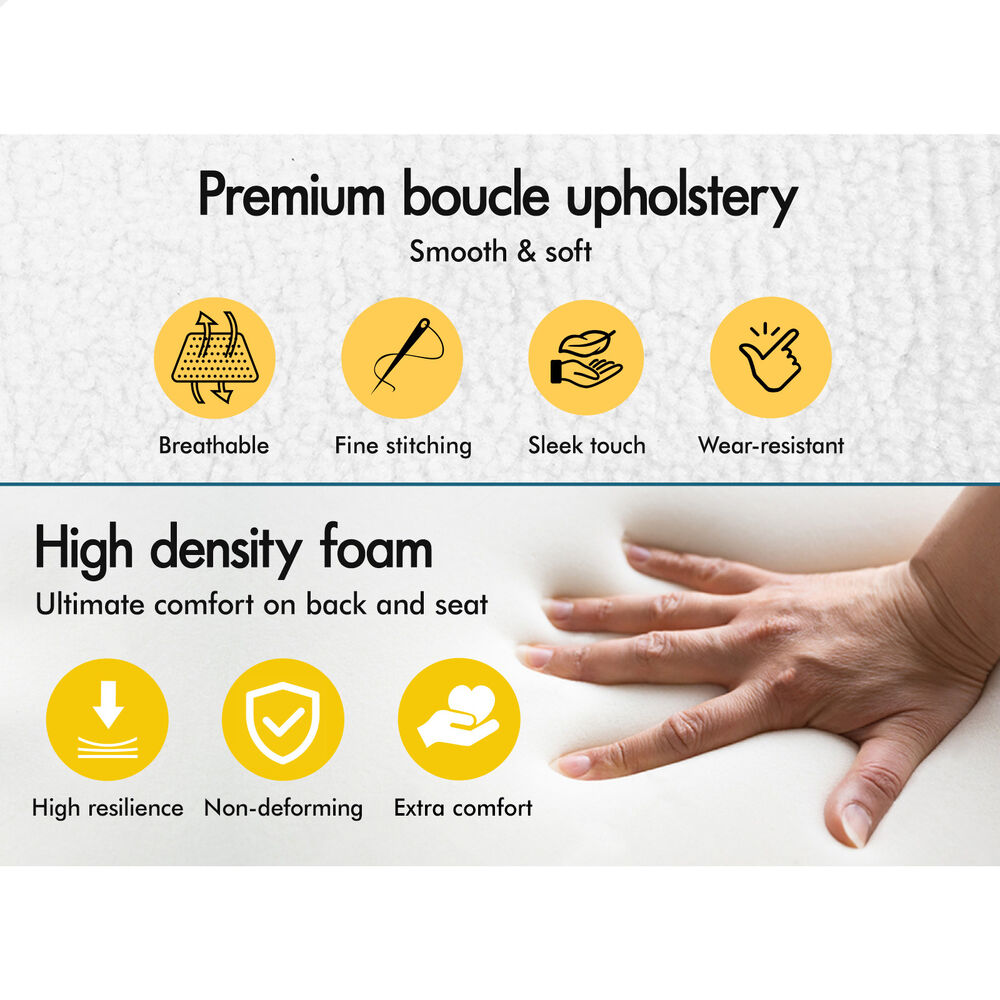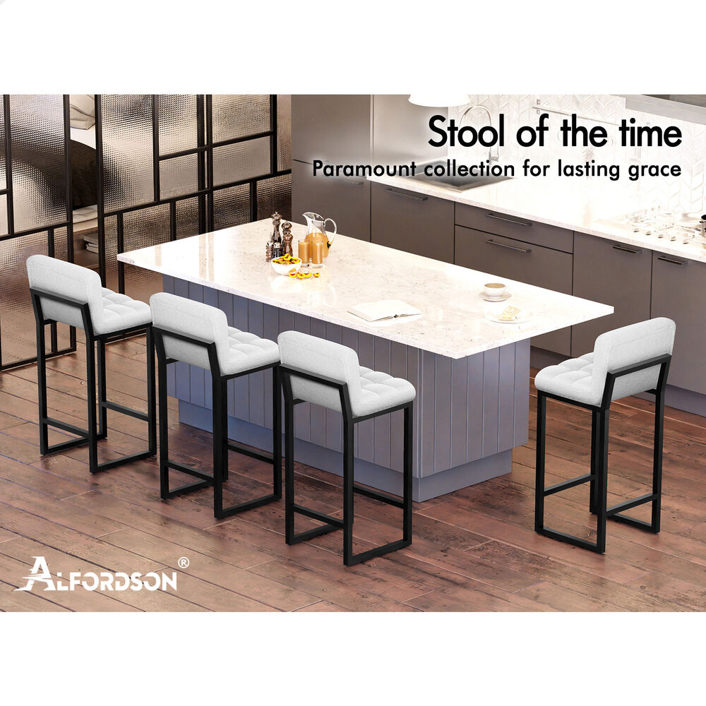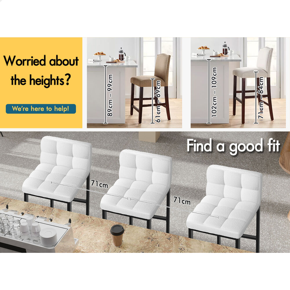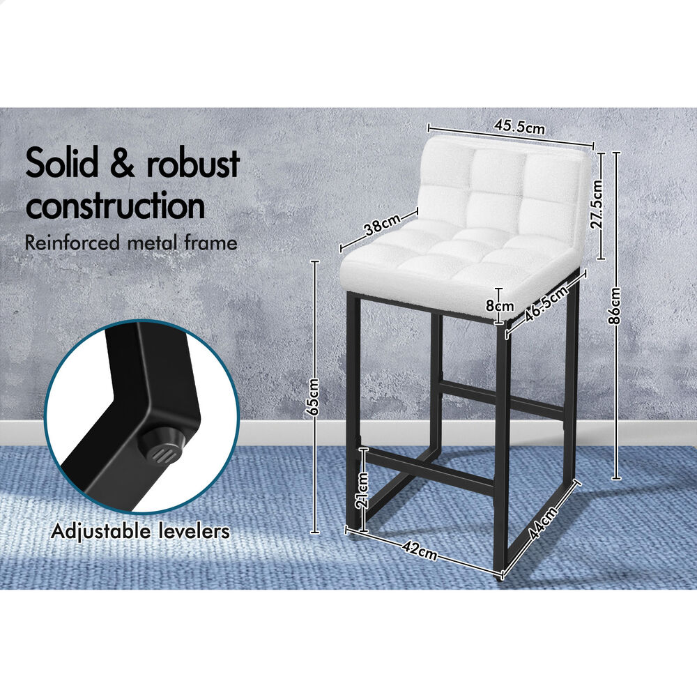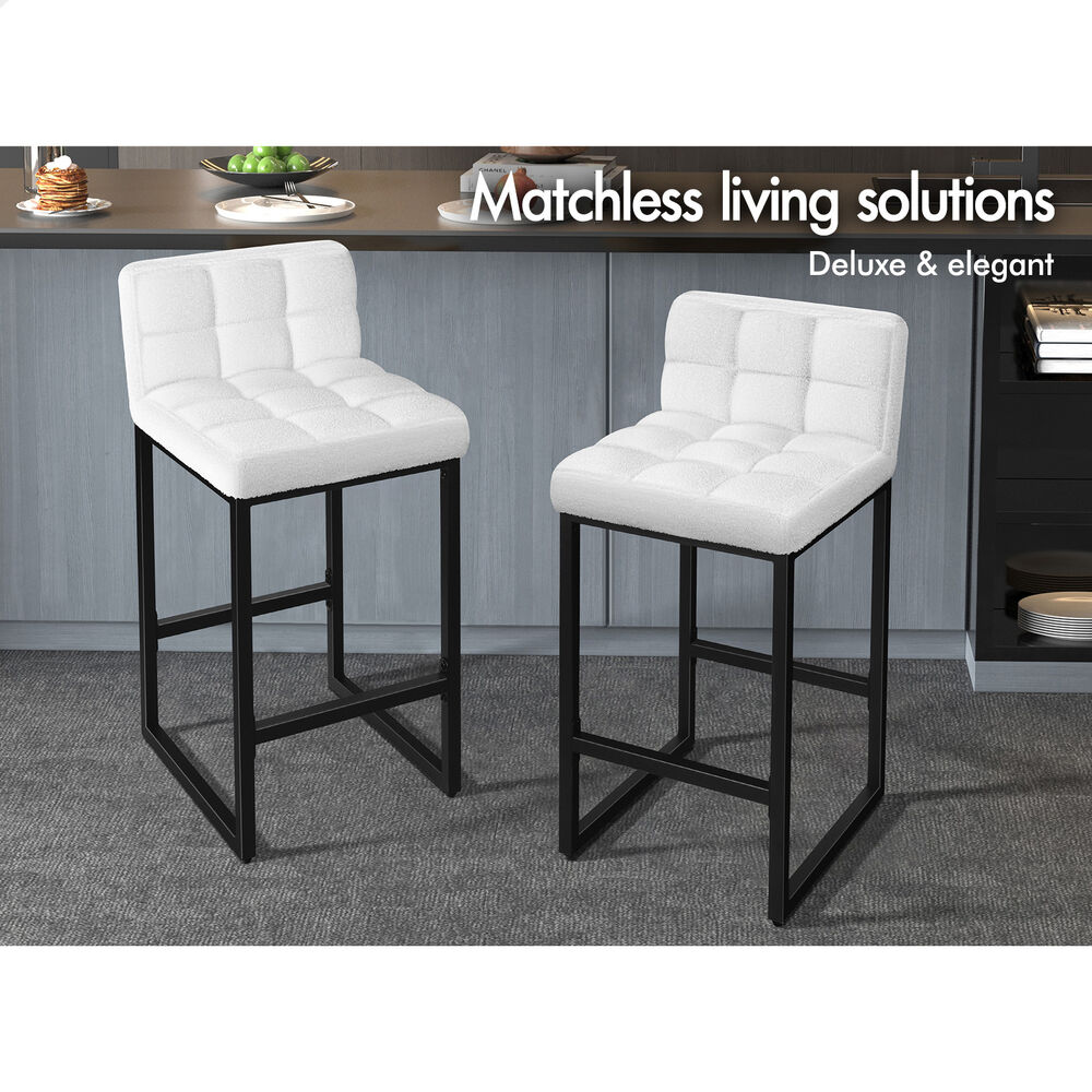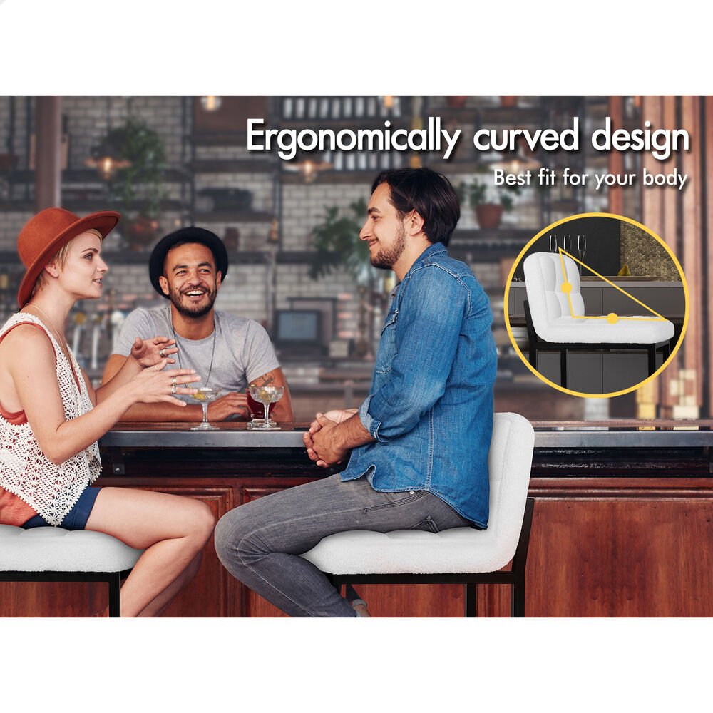 ALFORDSON 4x Bar Stools 65cm Kitchen Counter Metal Boucle Dining Chairs White