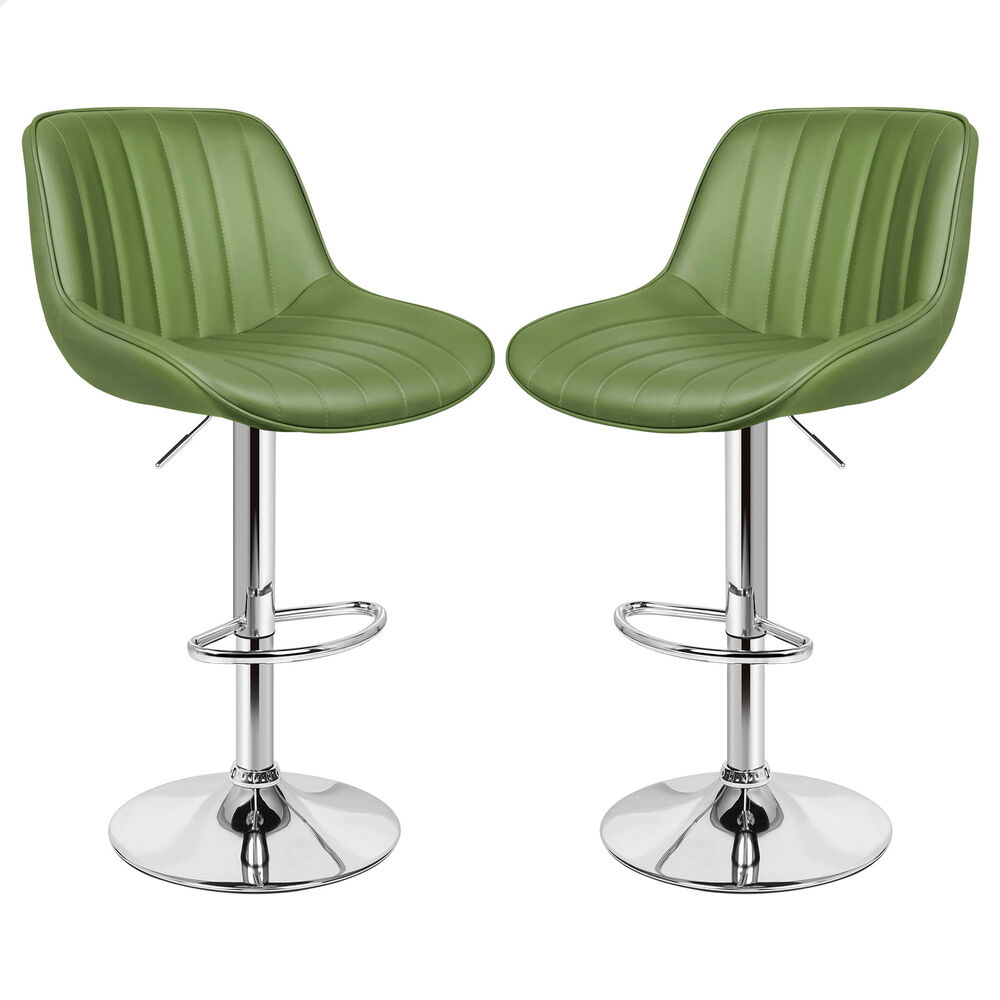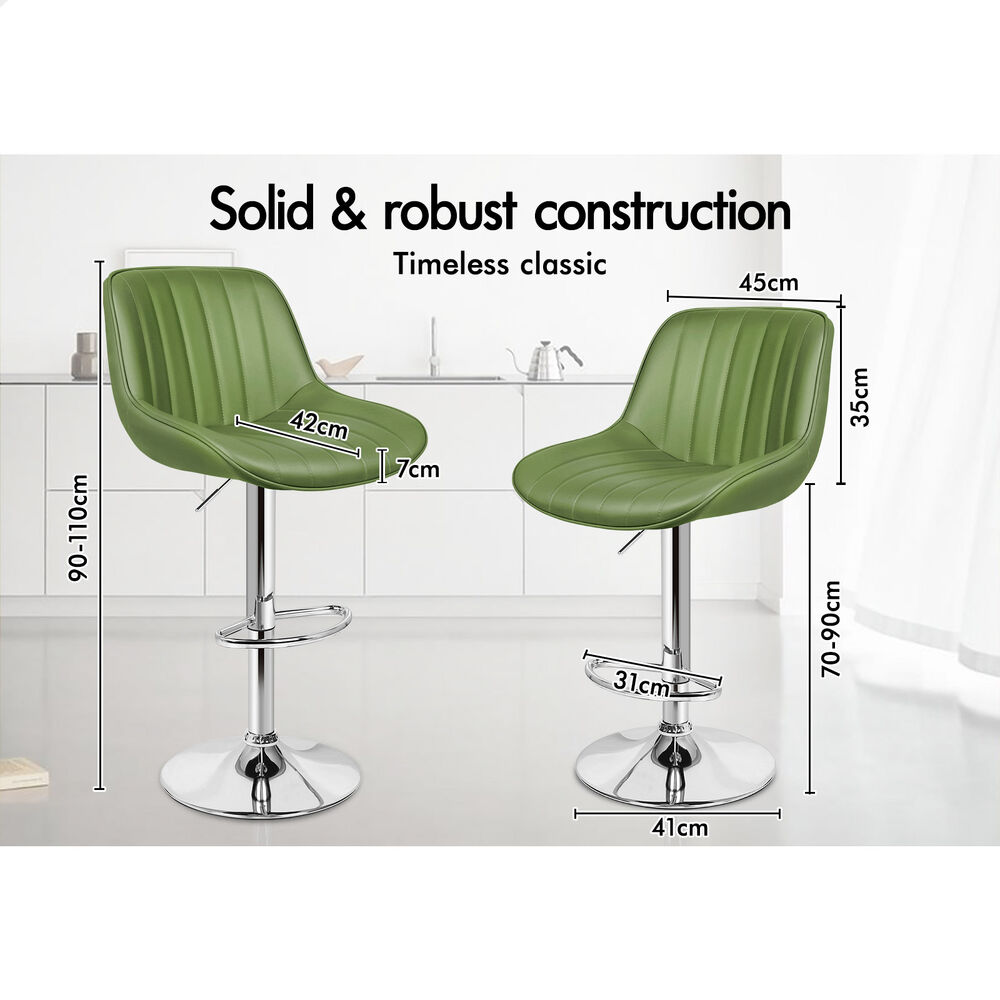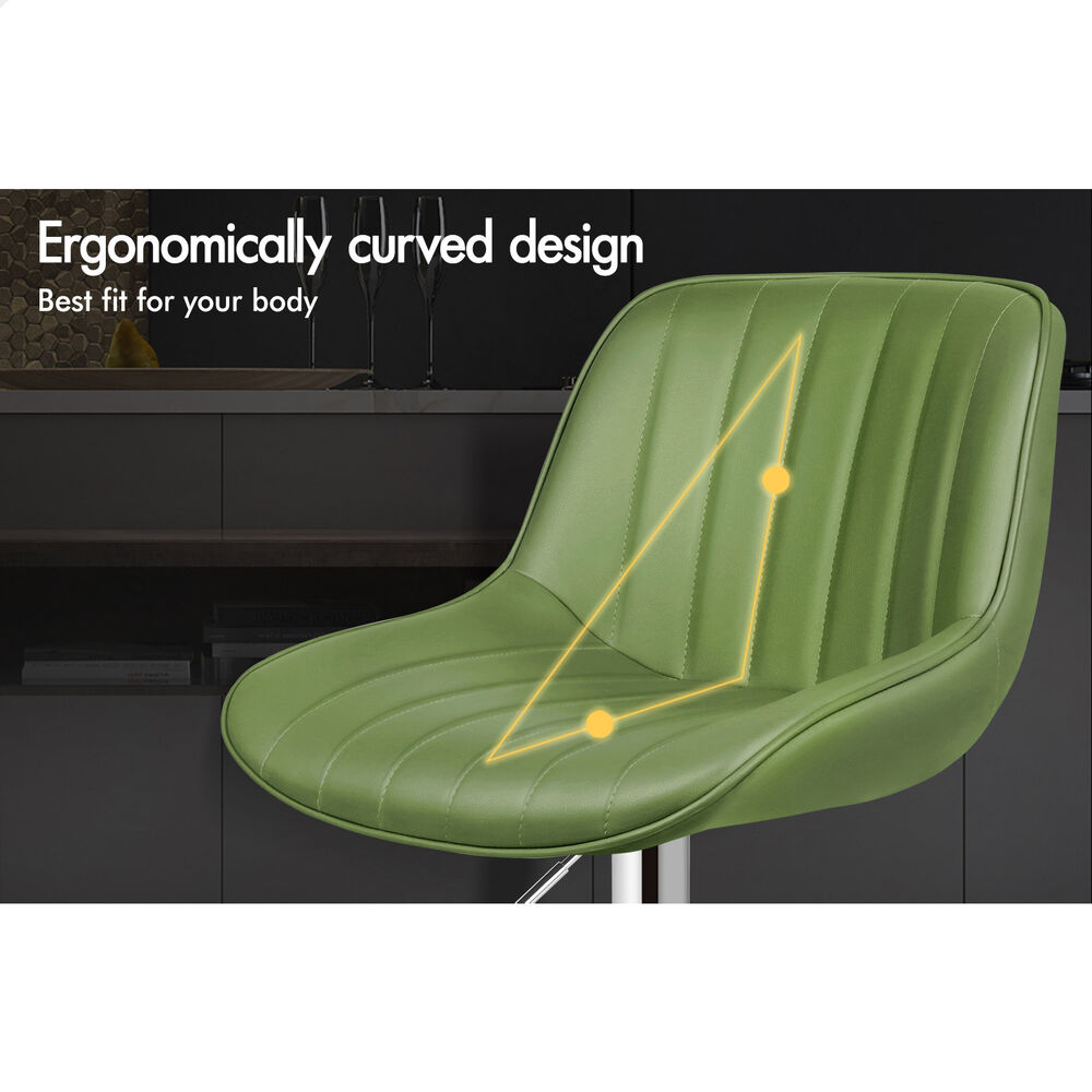ALFORDSON 2x Bar Stools Gas Lift Leather Bar Chairs Kitchen Swivel Avocado Green