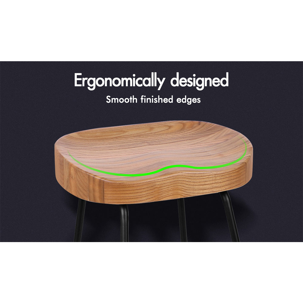 Alfordson 2x Bar Stools 75cm Tractor Kitchen Wooden Vintage Chair Natural
