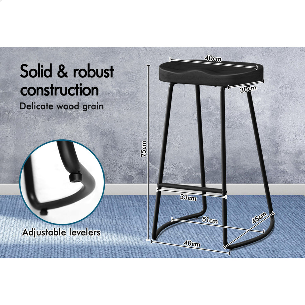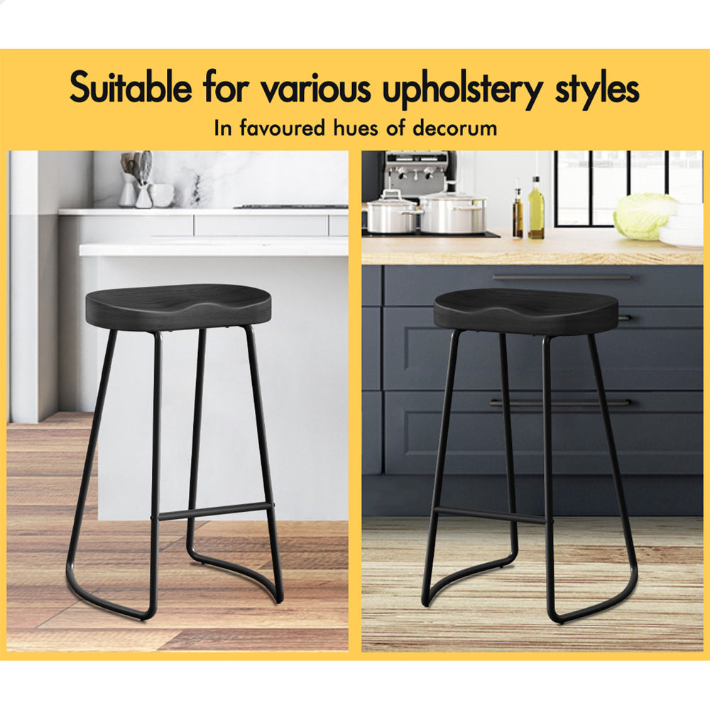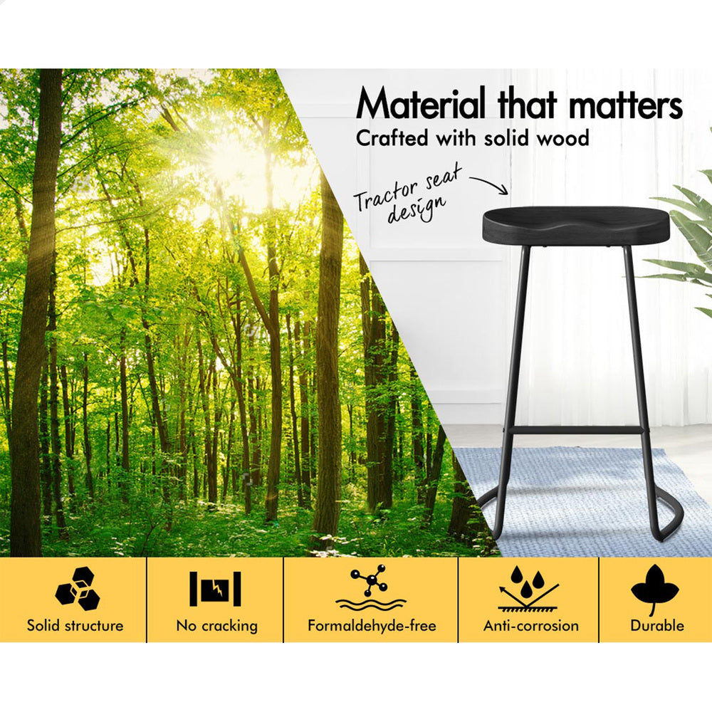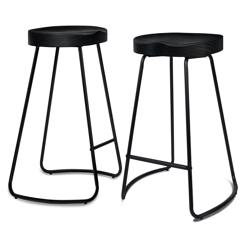 2x ALFORDSON Bar Stools Tractor Vintage 75cm Black