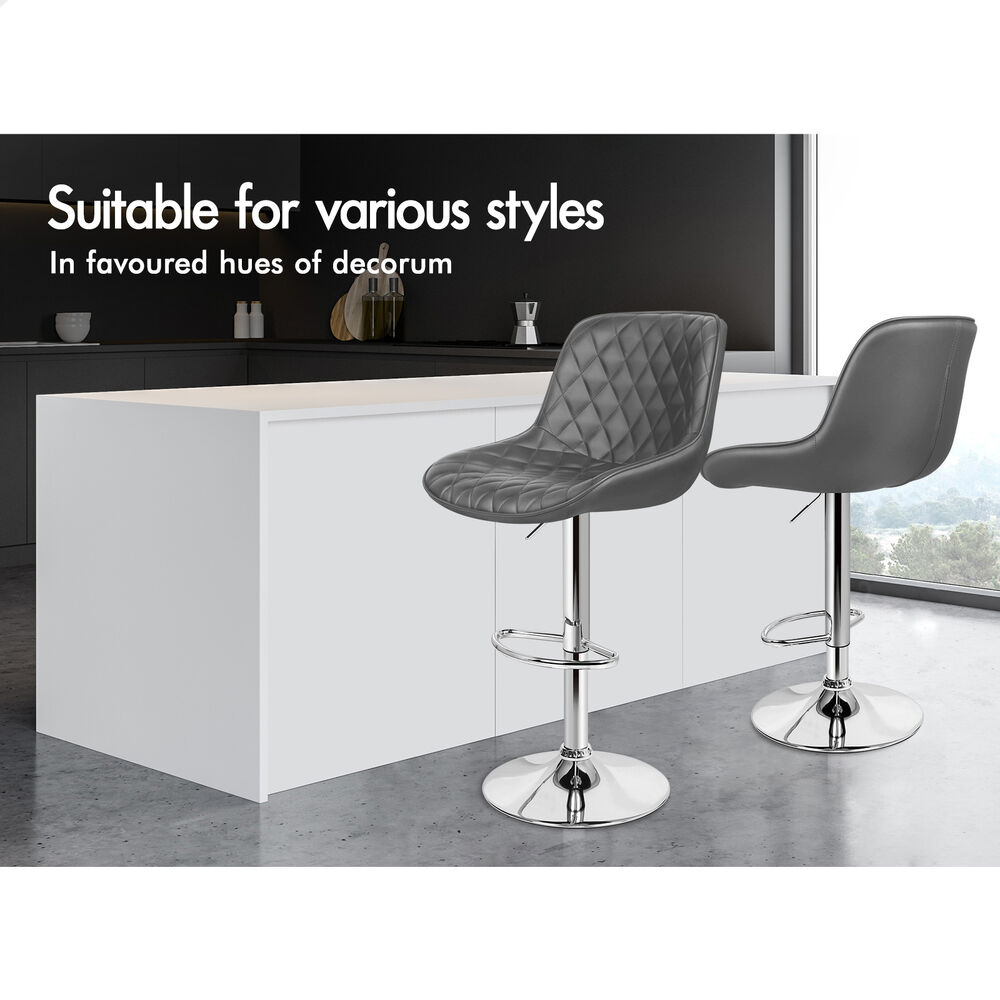 2x ALFORDSON Bar Stools Leather Stool Grey